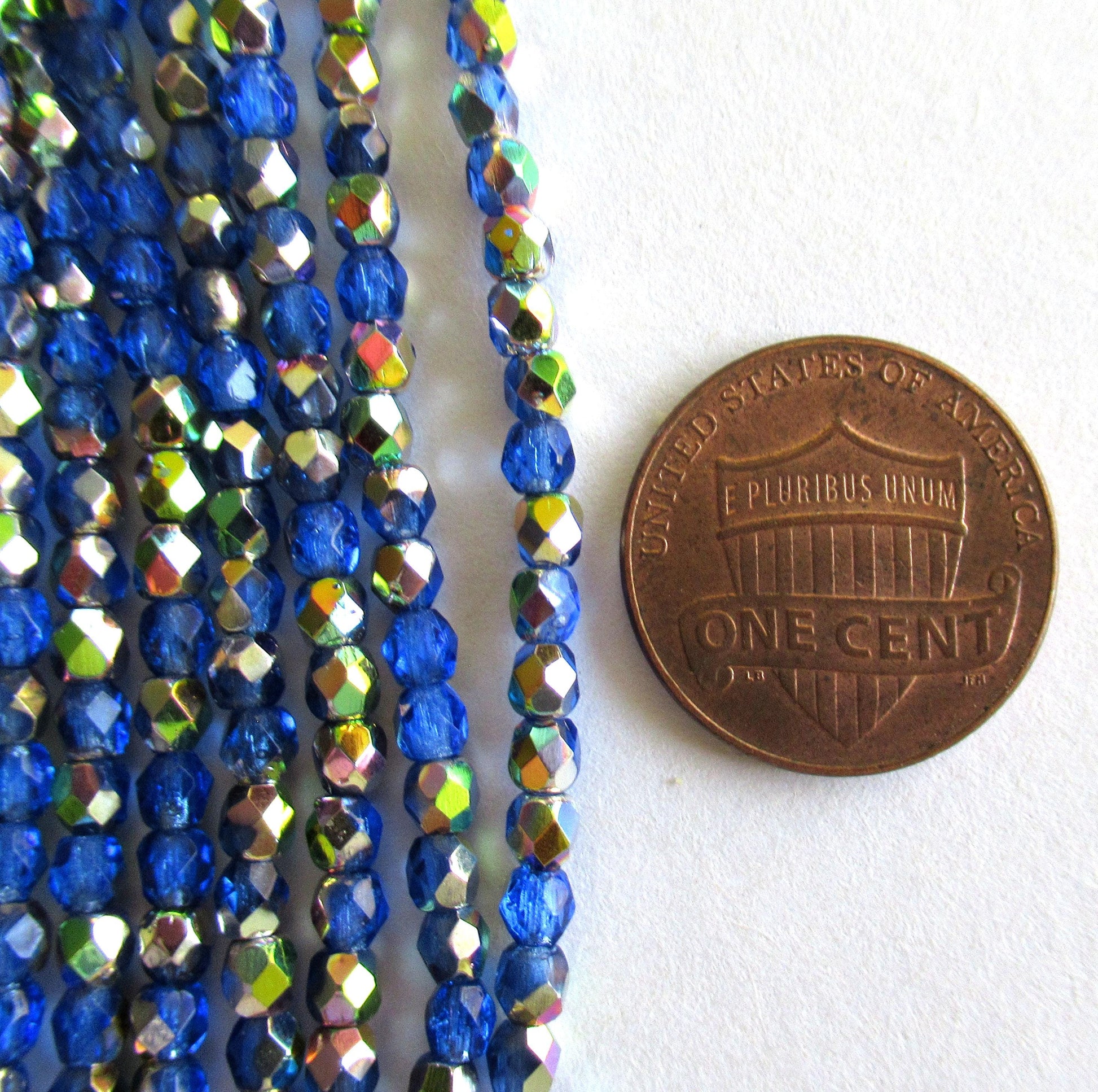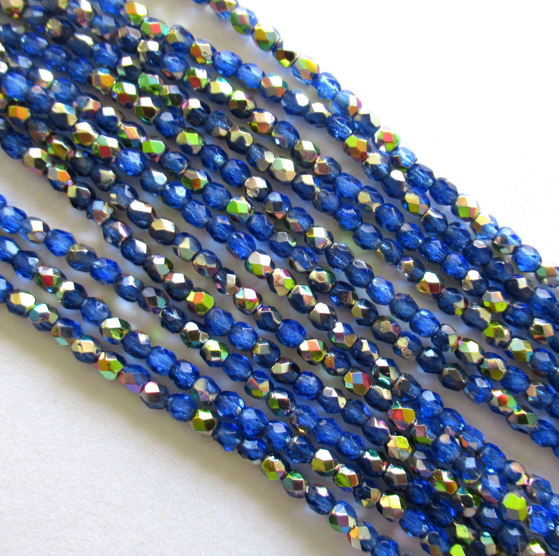 50 3mm Czech glass beads - Sapphire Blue Celsian beads - round faceted fire polished beads - C0015