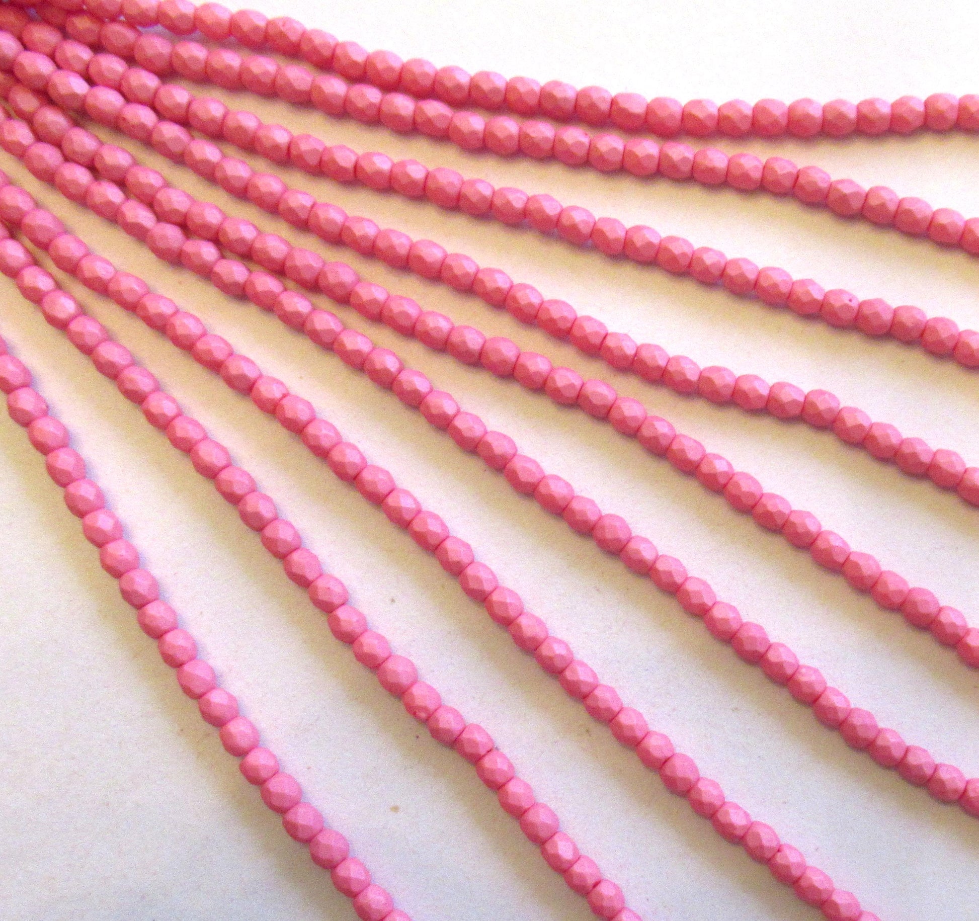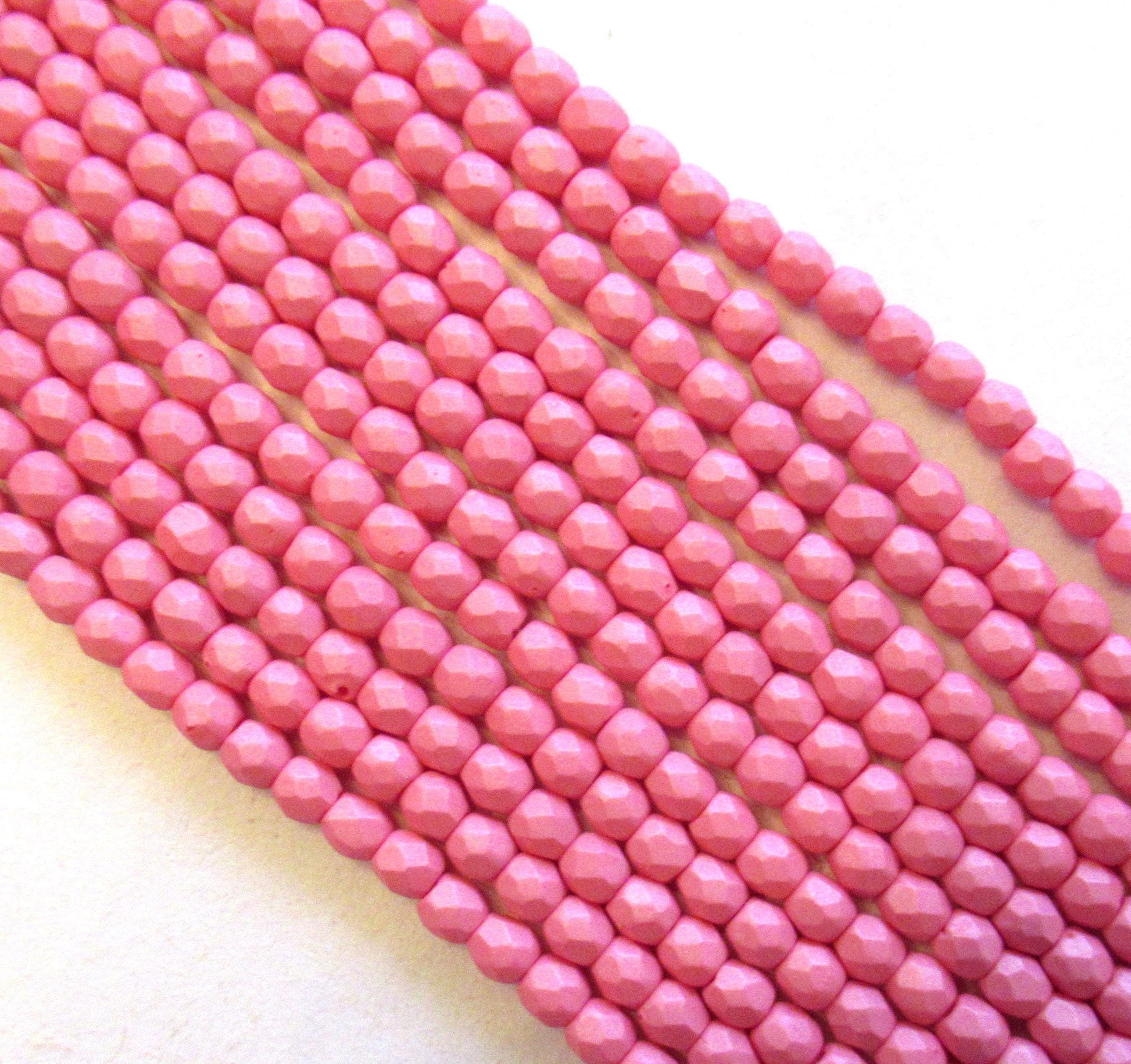 50 3mm Czech glass beads - Saturated Pink - opaque matte bright pink beads- fire polished faceted round beads C00627