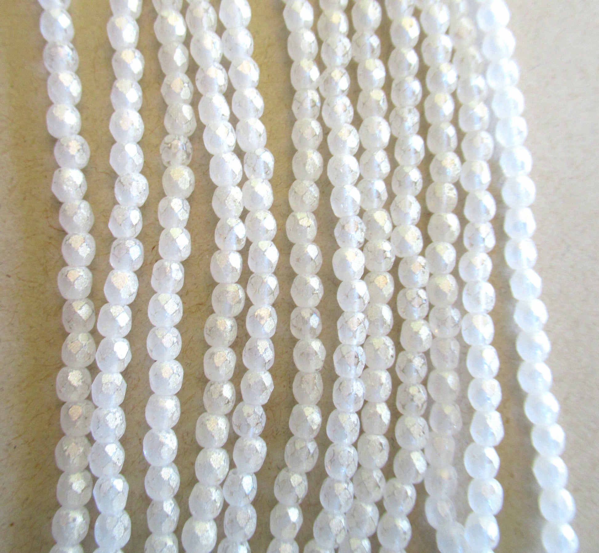 50 3mm Czech glass beads - Sueded Gold Crystal - clear beads with a frosted gold finish - white fire polished, faceted round beads - C0074