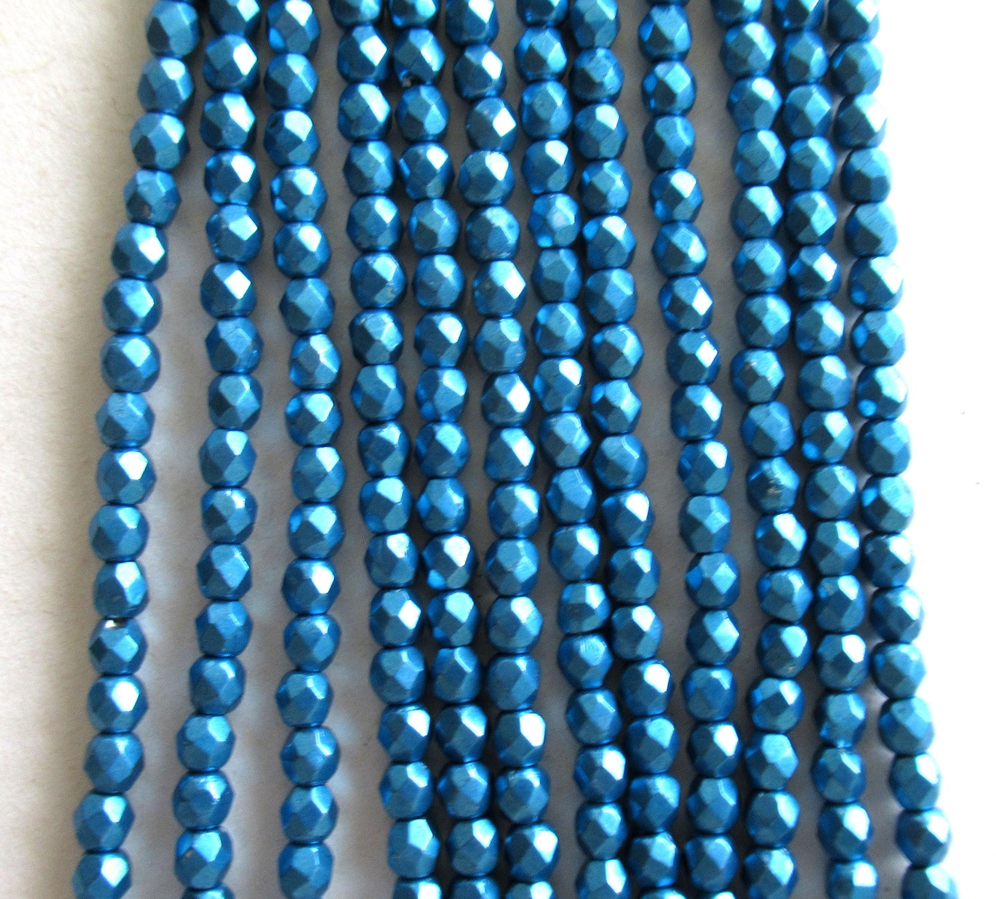50 3mm Czech round glass beads - saturated metallic nebula blue - faceted fire polished beads - C0083