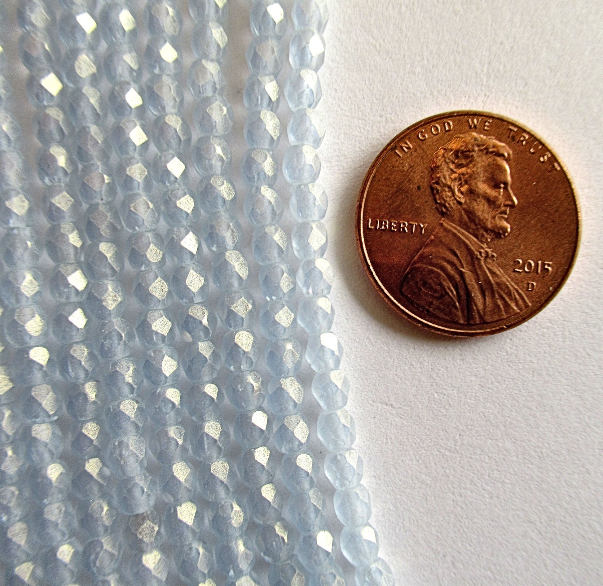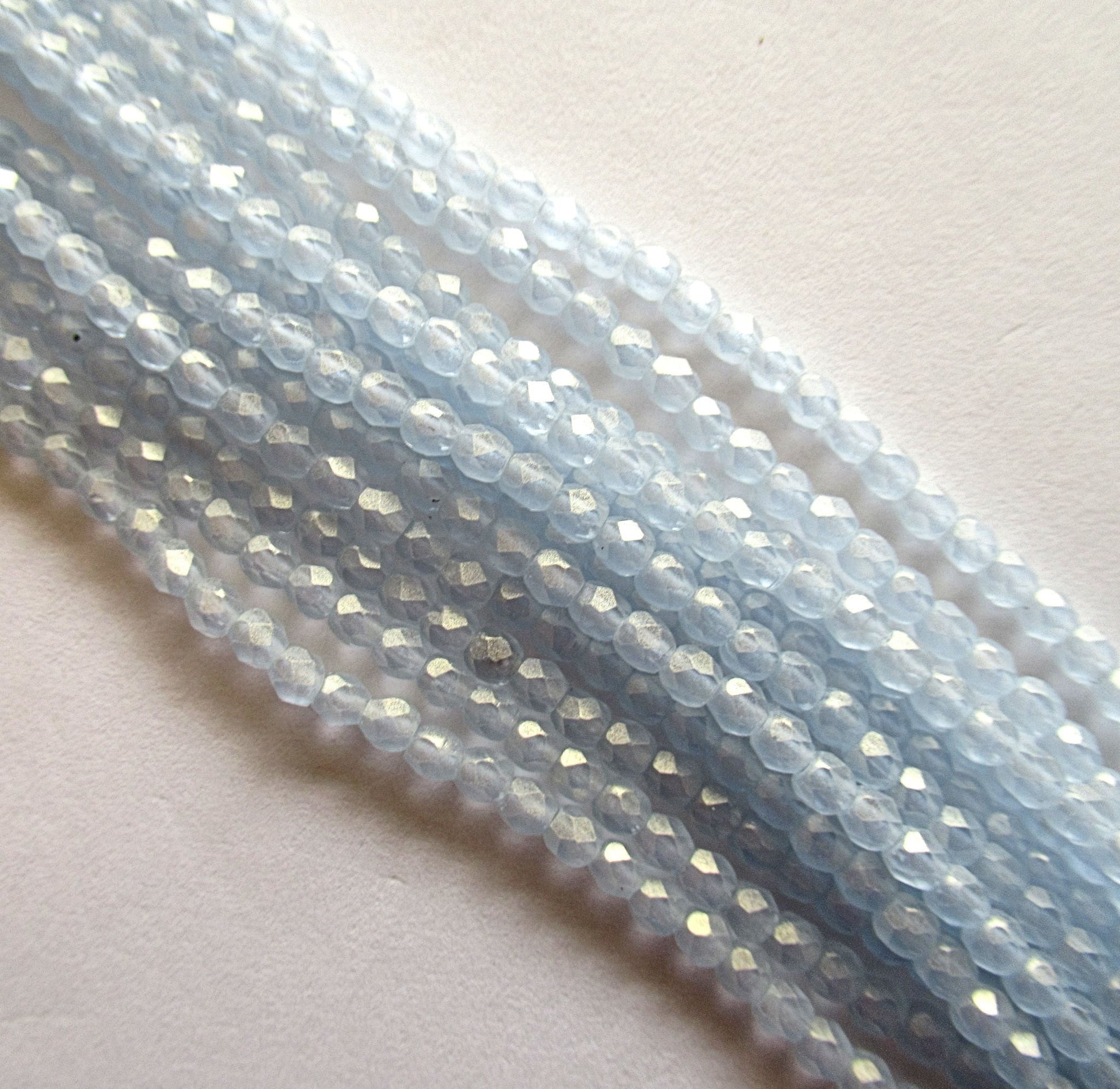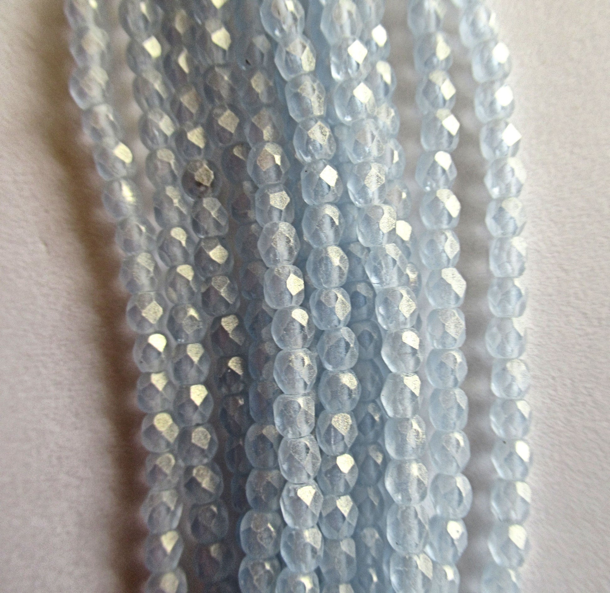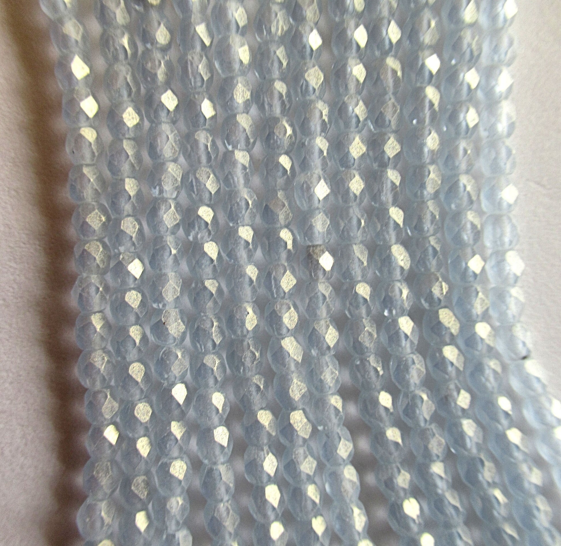50 3mm faceted fire polished round Czech glass beads - Sueded Gold Light Sapphire Blue beads - C0004