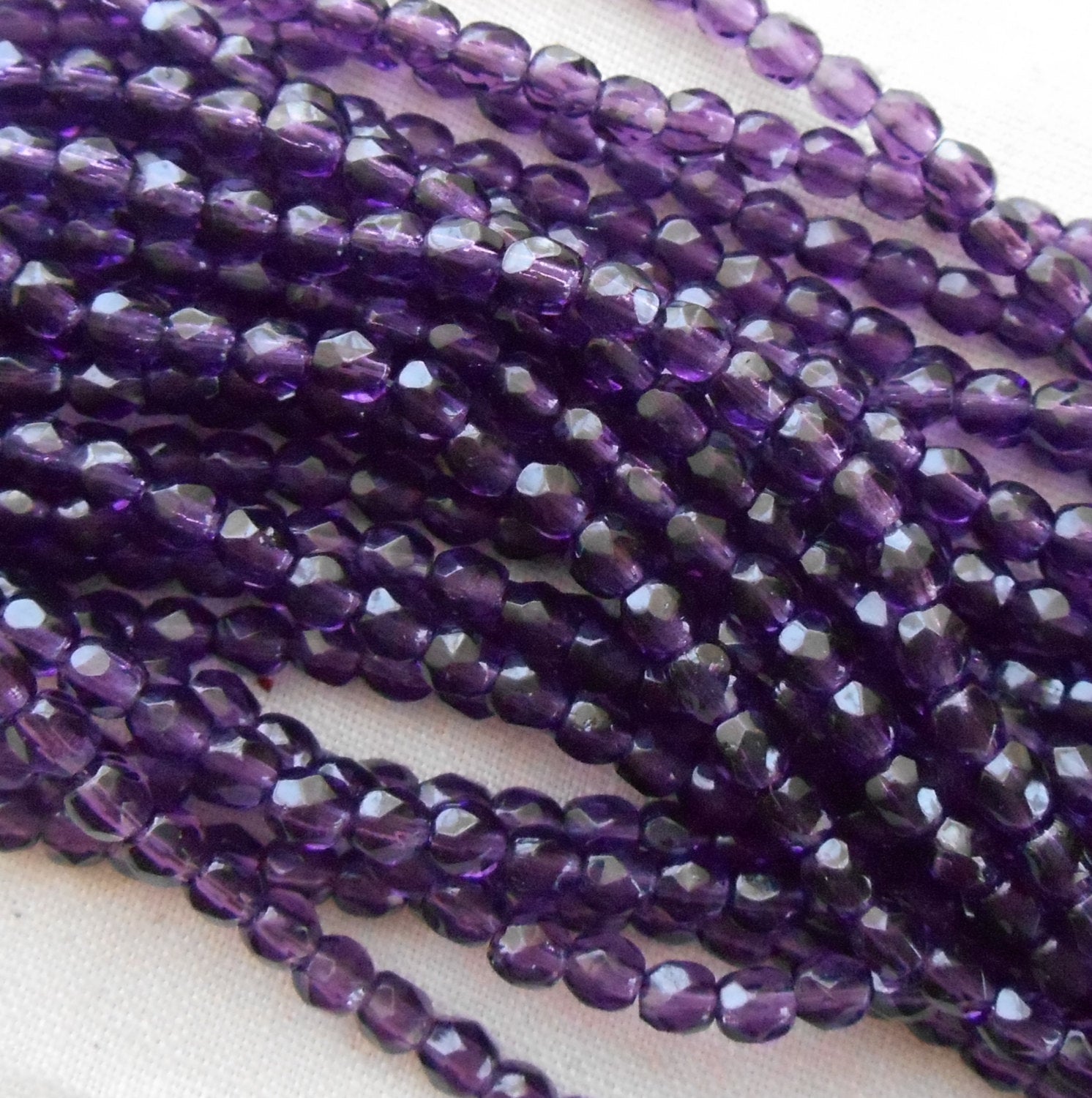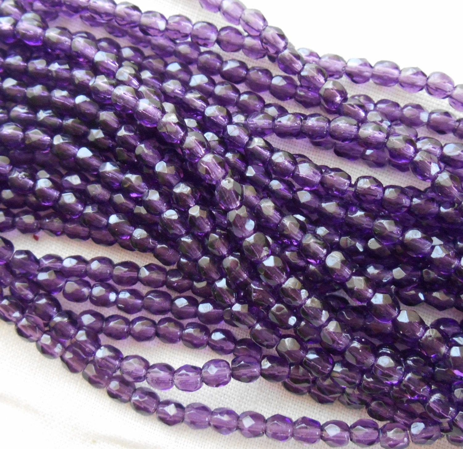 This is a set of 50 3mm Tanzanite glass beads, Purple, amethyst, fire polished faceted round glass beads. These beads are a beautiful color and they will stand out in any project!