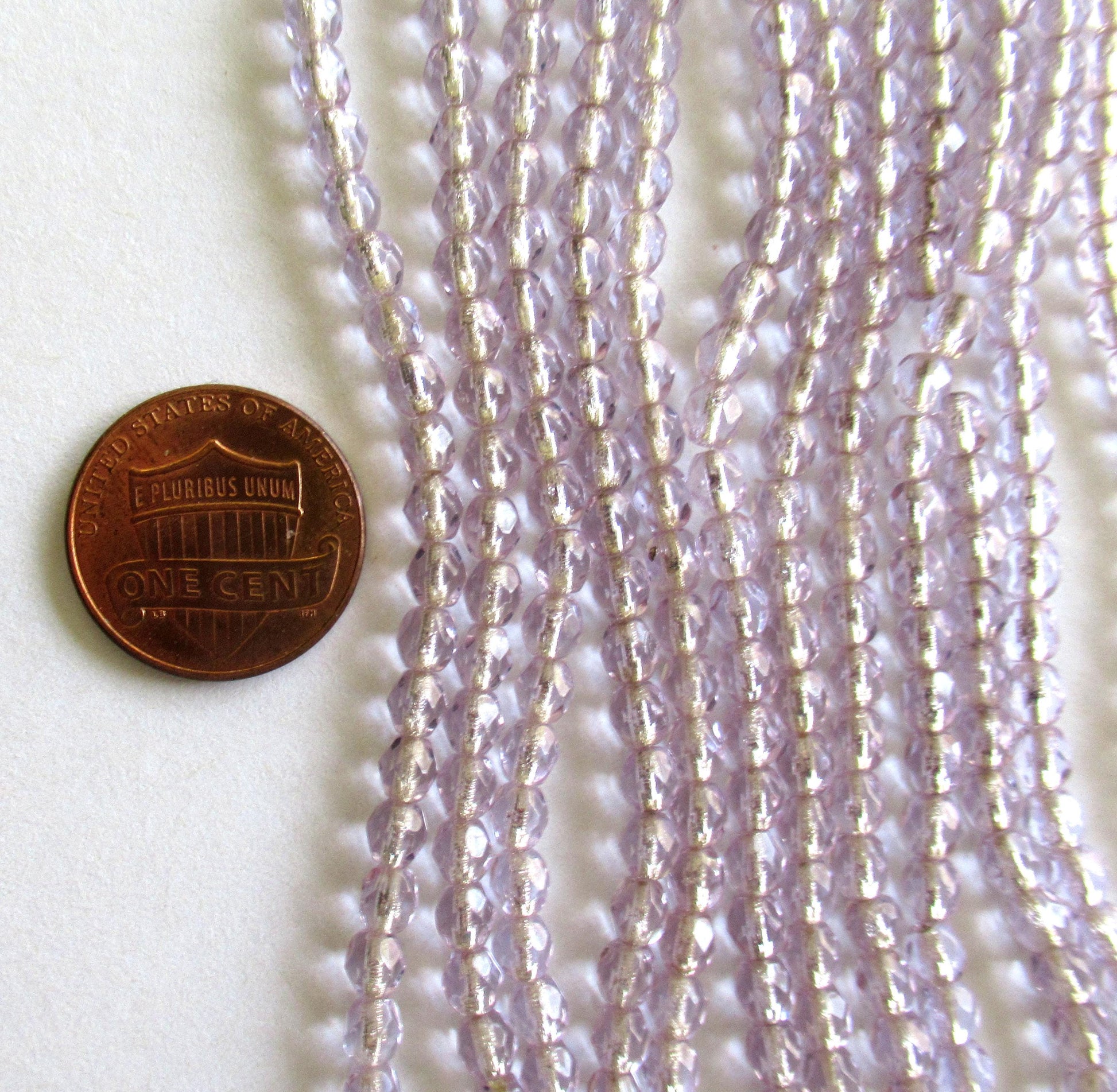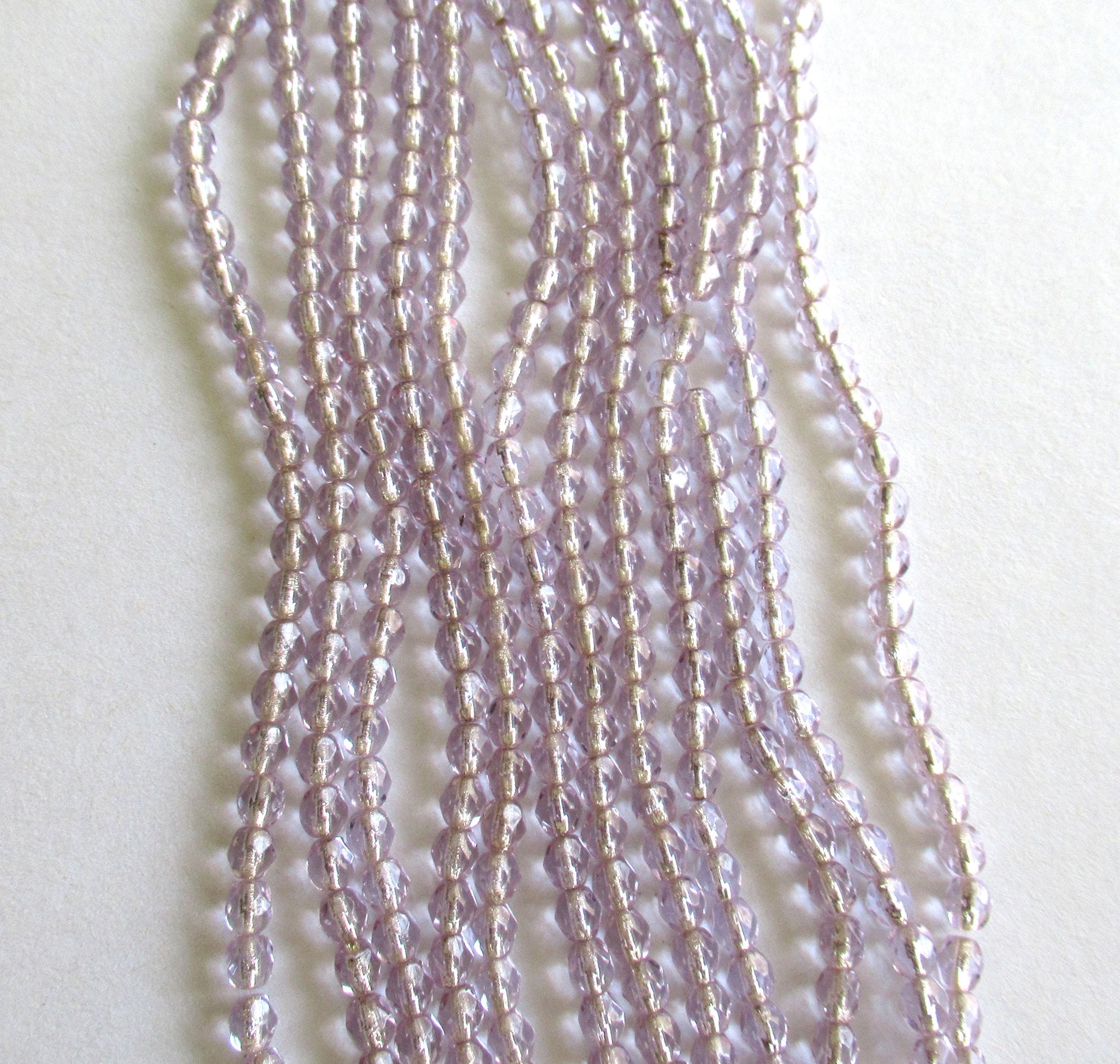50 4mm Czech glass beads - Light Alexandrite silver lined beads - lilac / lavender - fire polished faceted round beads - C0066