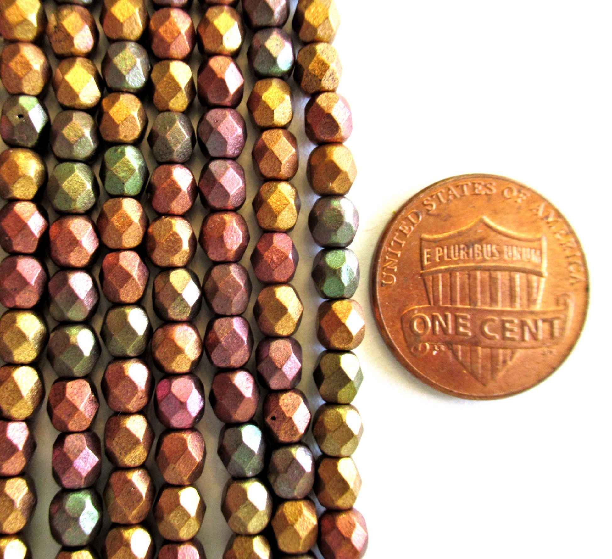 50 4mm Czech glass beads - Matte Metallic Bronze Iris Czech gold tones beads - fire polished faceted round beads - C0025