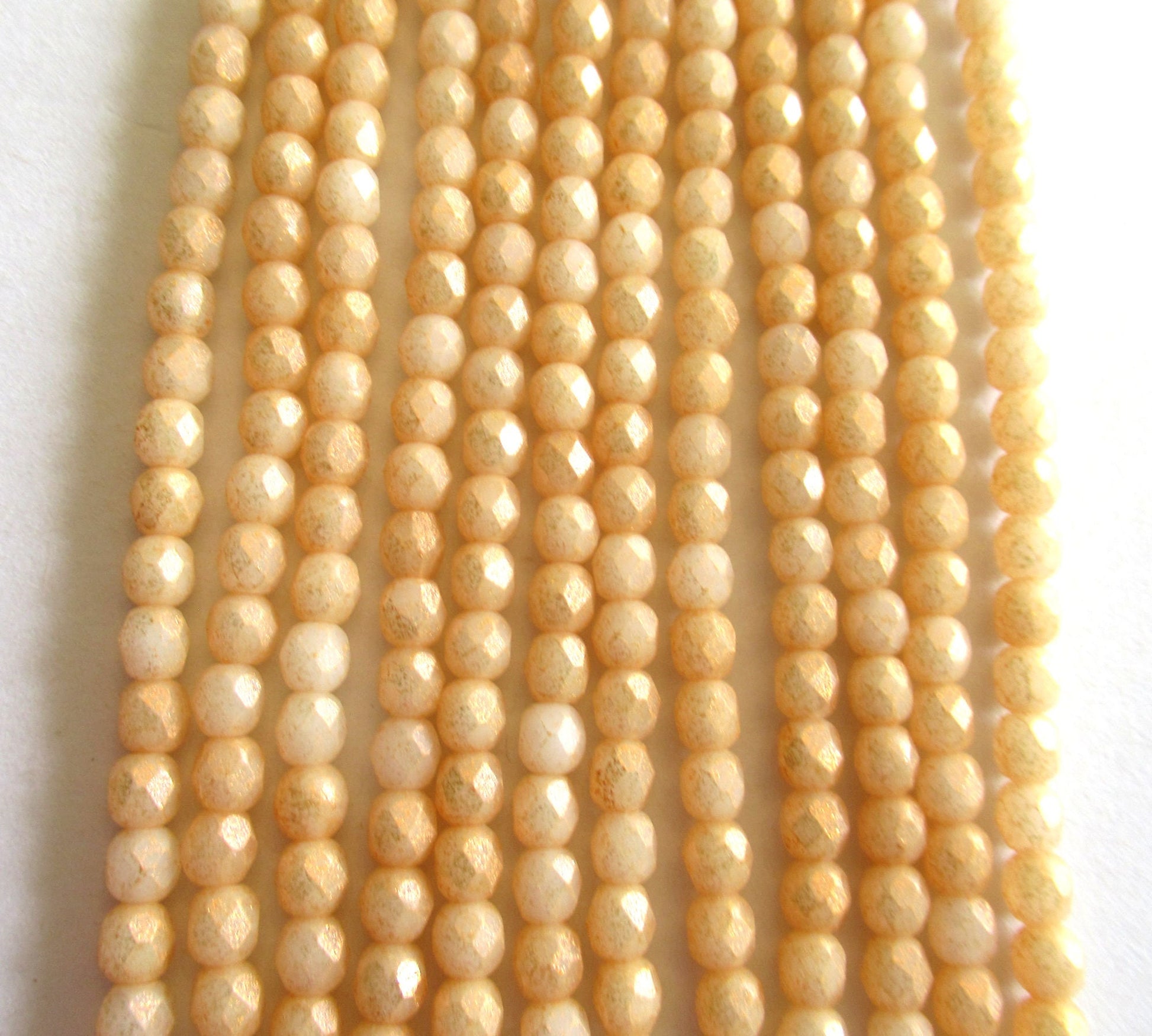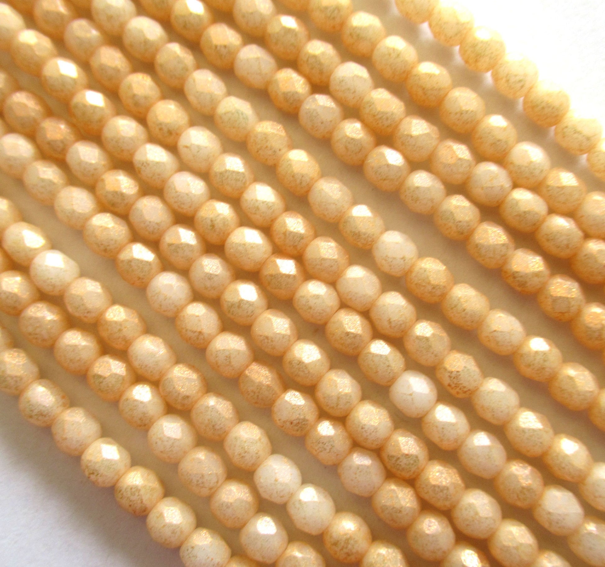 50 4mm Czech glass beads - Milky Antique Shimmer - off white beads w/ gold finish - round faceted fire polished beads - 0014