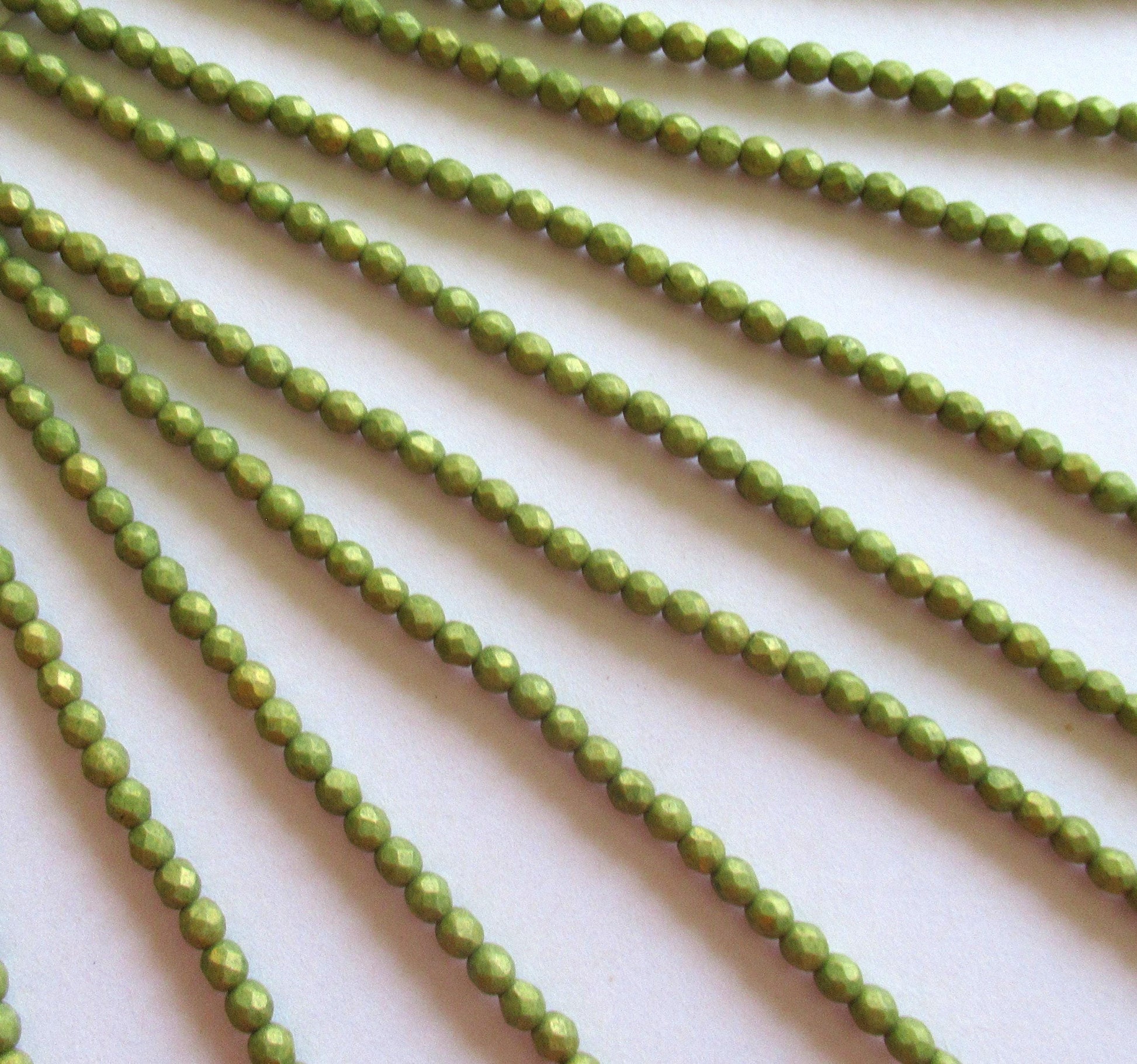 50 4mm Czech glass beads - opaque pacifica avocado green - fire polished faceted round beads - C0027