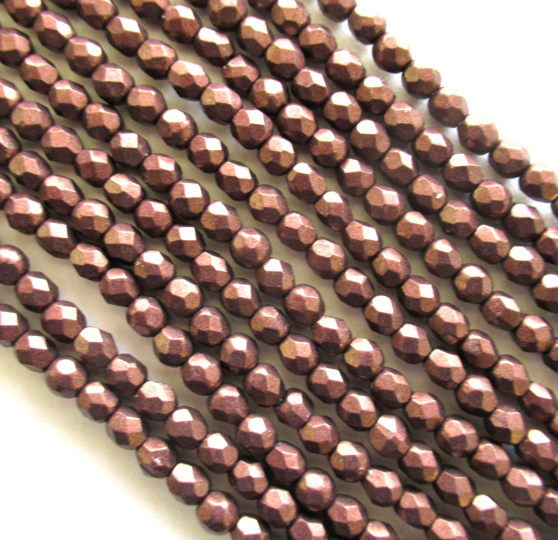 50 4mm Czech glass beads - saturated metallic chicory coffee brown fire polished faceted round beads - C0014