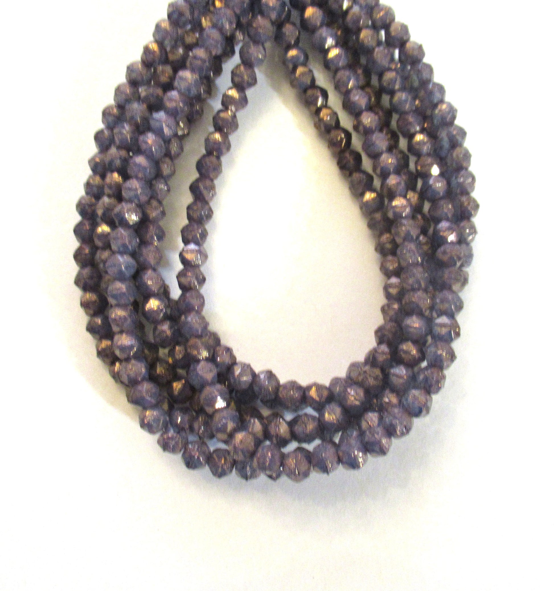 50 4mm Czech glass English cut faceted beads - amethyst or purple with a gold luster finish - C0057