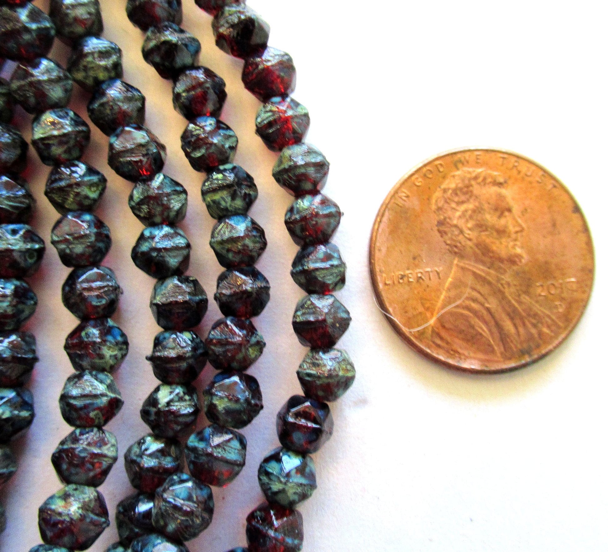 50 4mm Czech glass English cut faceted beads - garnet red beads with a full picasso coat - C0029