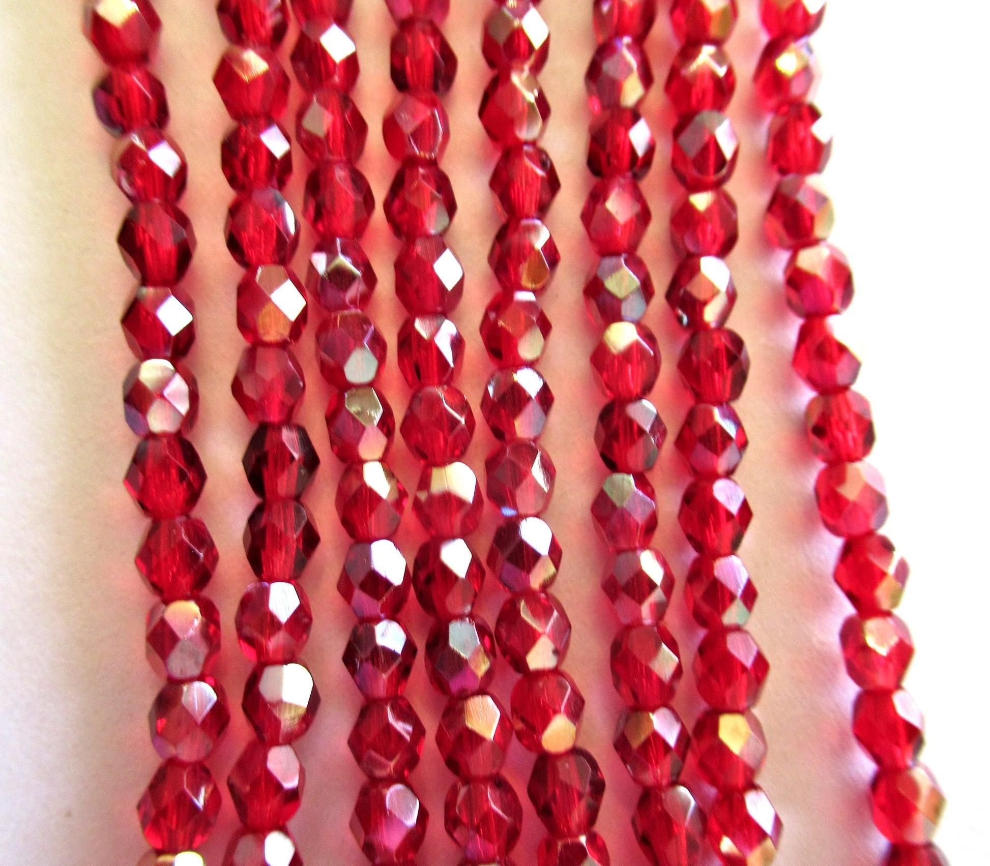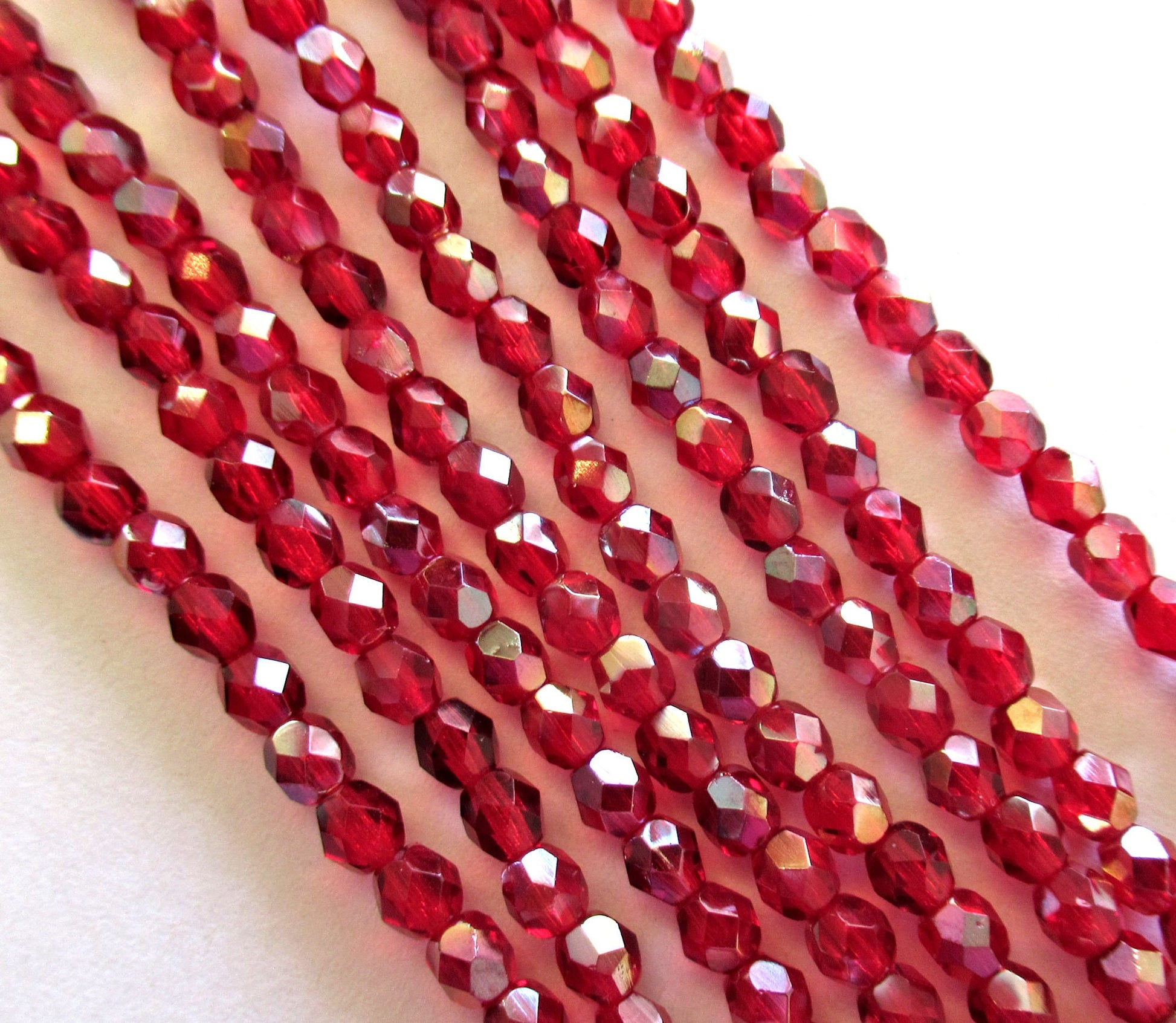 50 4mm Czech glass faceted beads - Ruby Red Celsian - fire polished round beads, C0007