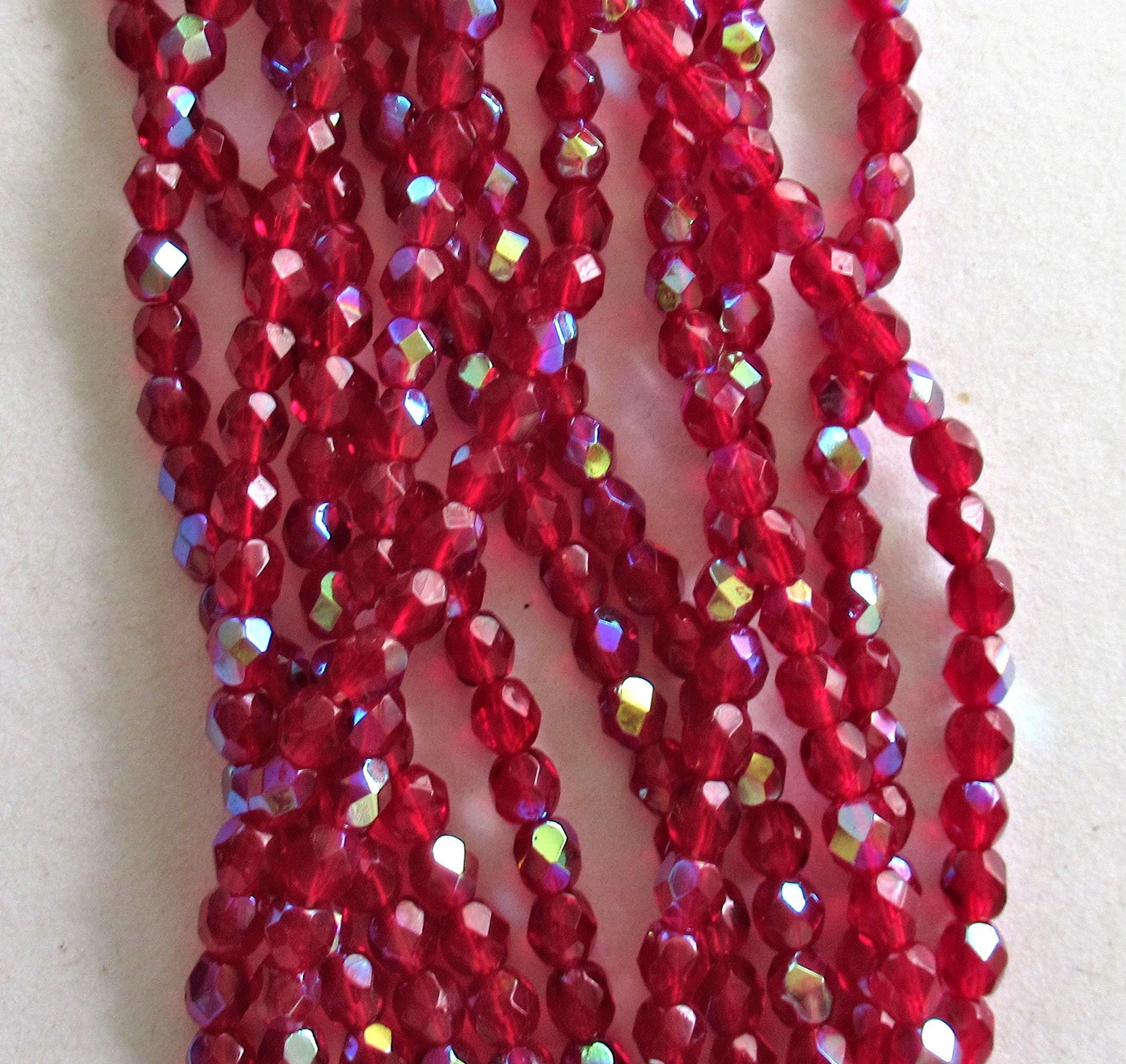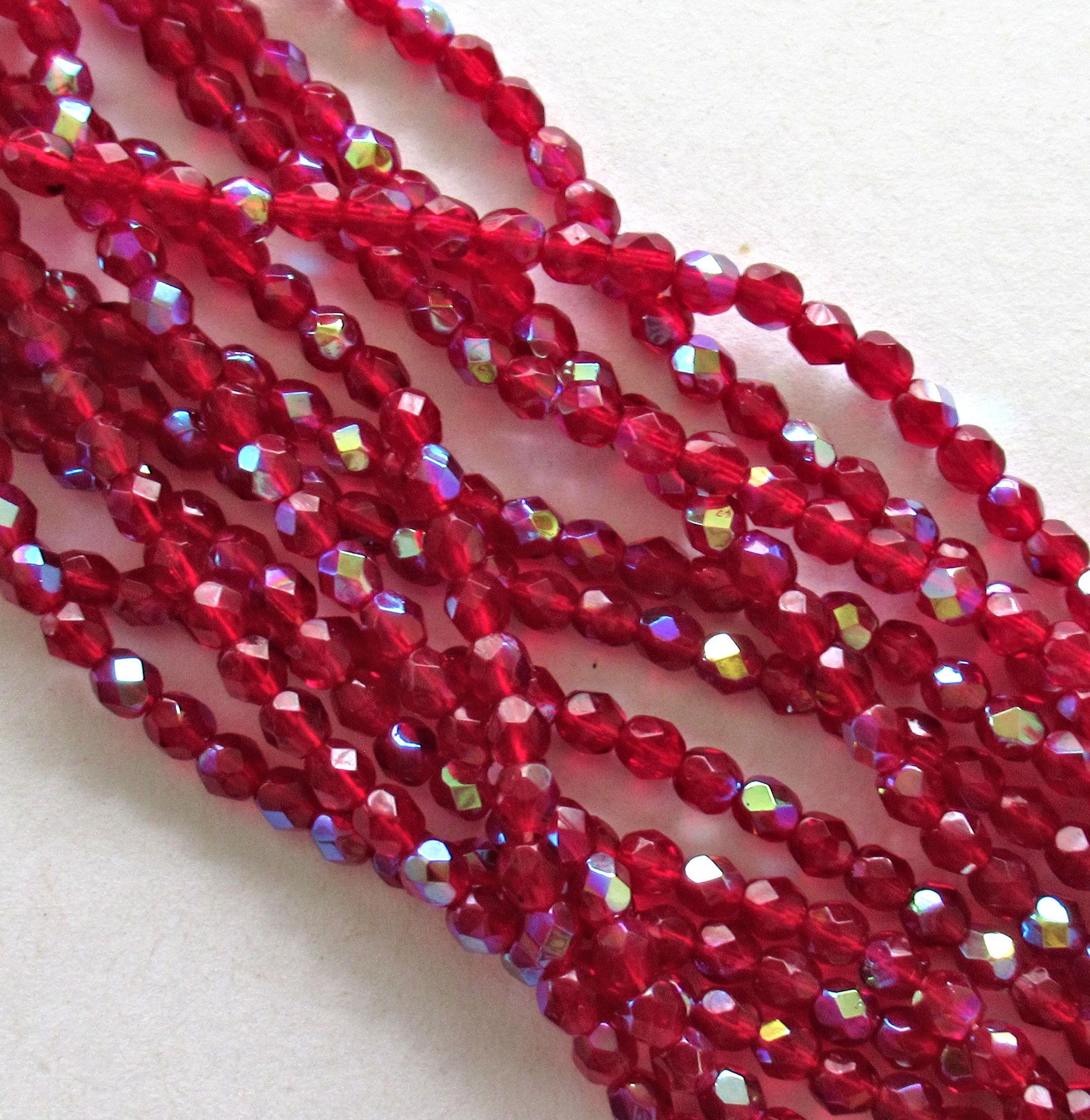 50 4mm Czech glass faceted beads - Ruby Red or Light Garnet AB - fire polished round beads - C0065