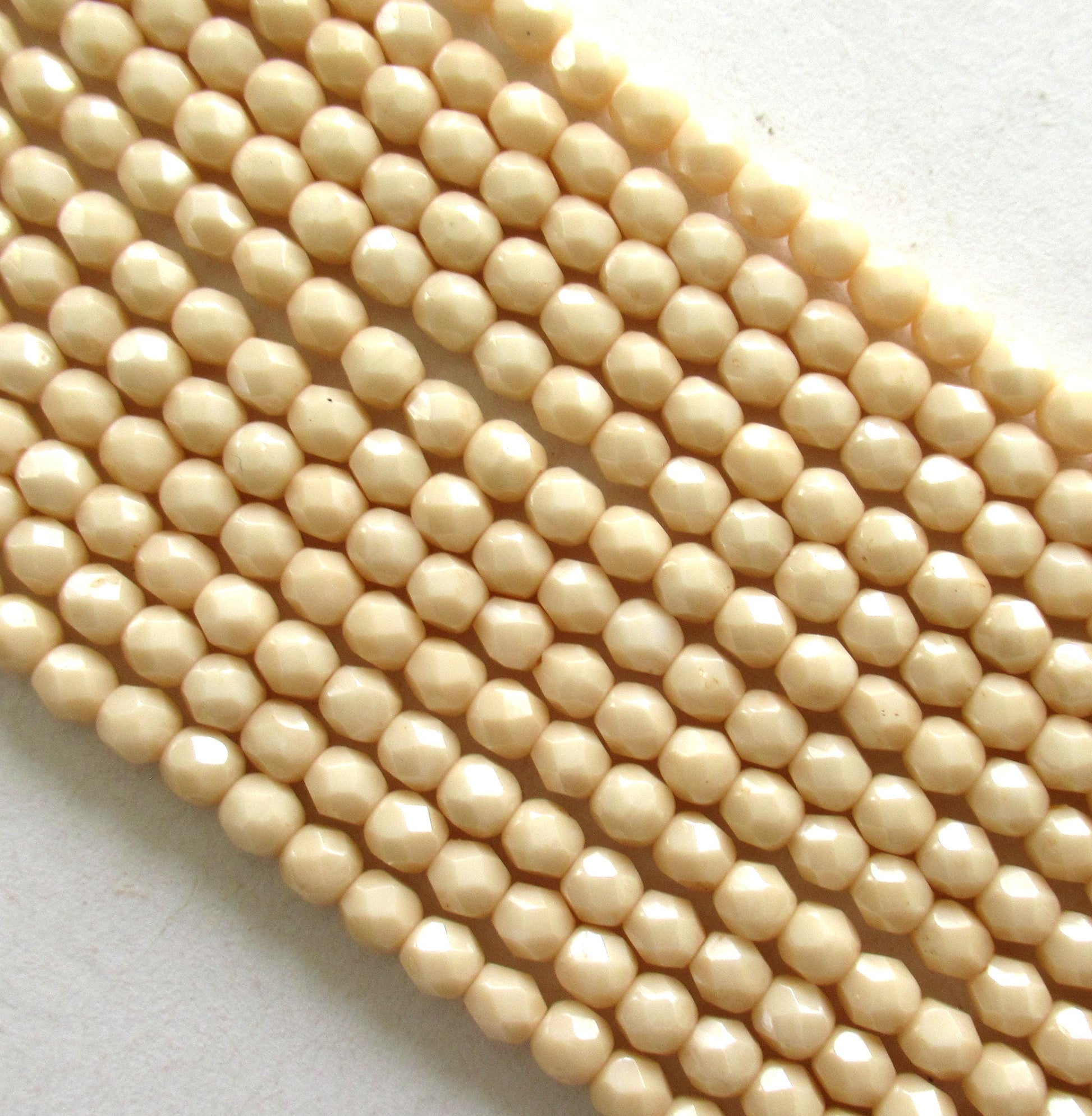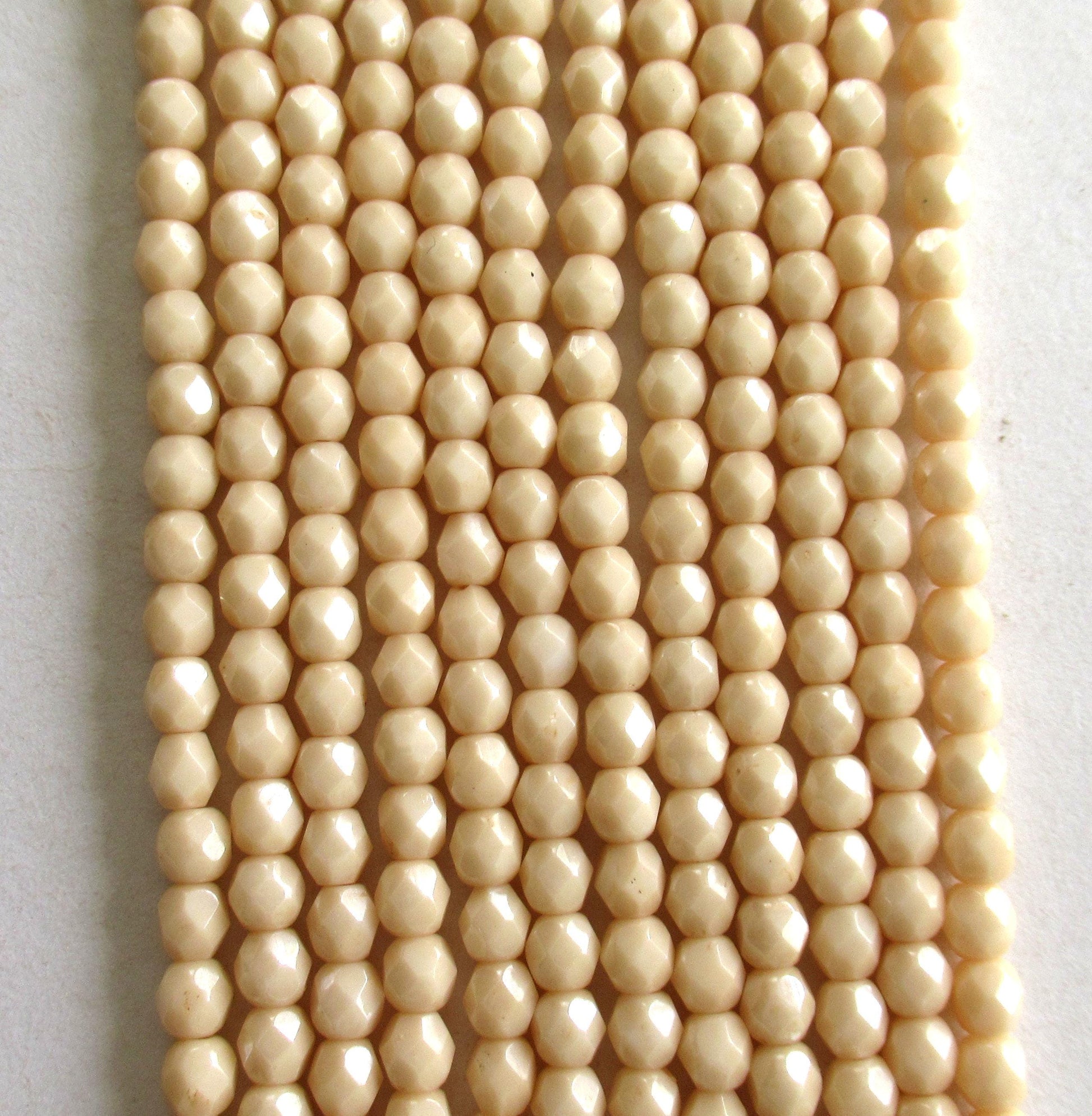 50 4mm Czech glass off white beads - Opaque Luster Champagne - neutral fire polished faceted round beads - C0056