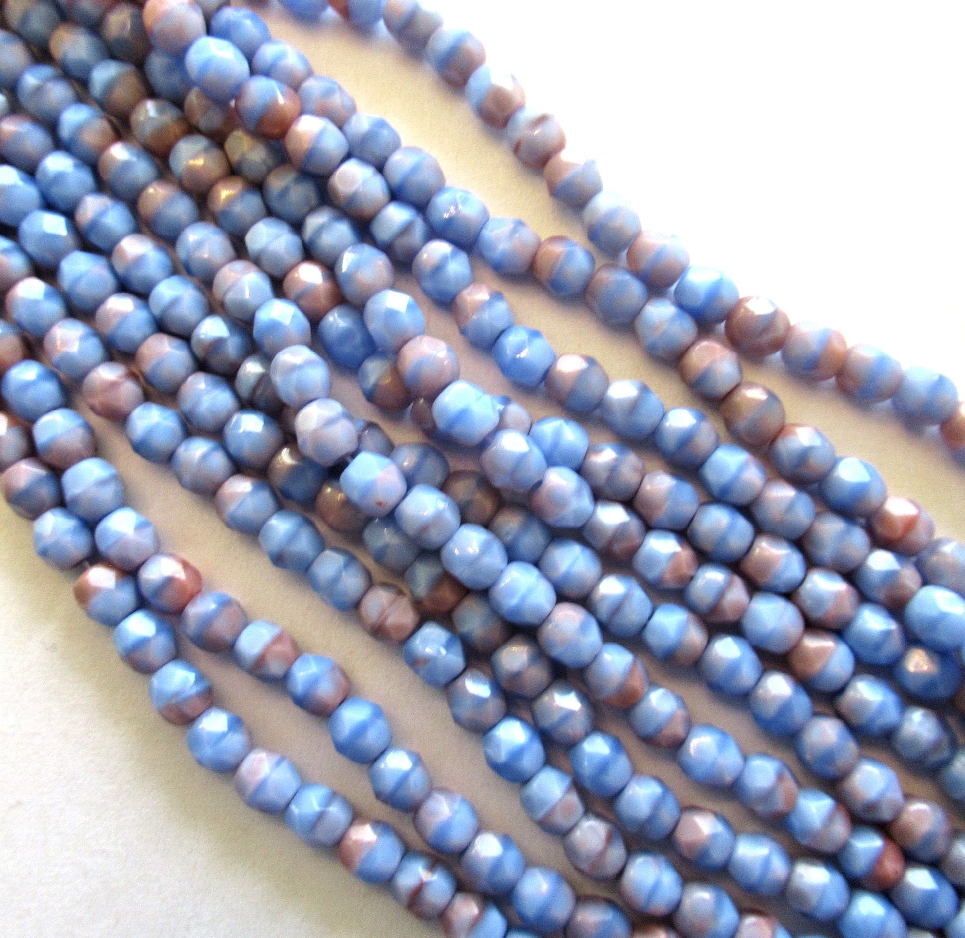 50 4mm faceted Czech glass beads - opaque pink & blue round fire polished beads - C0086