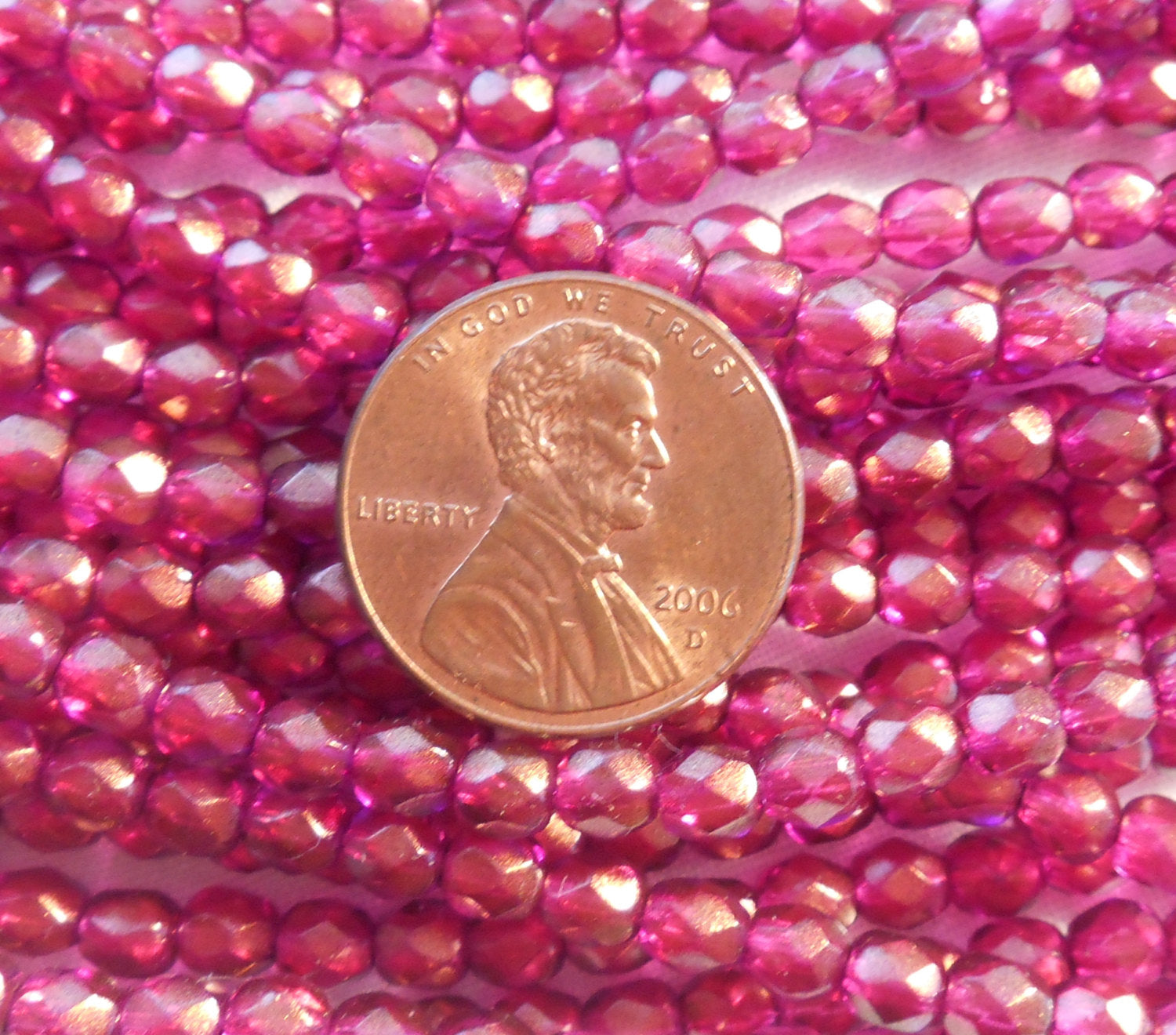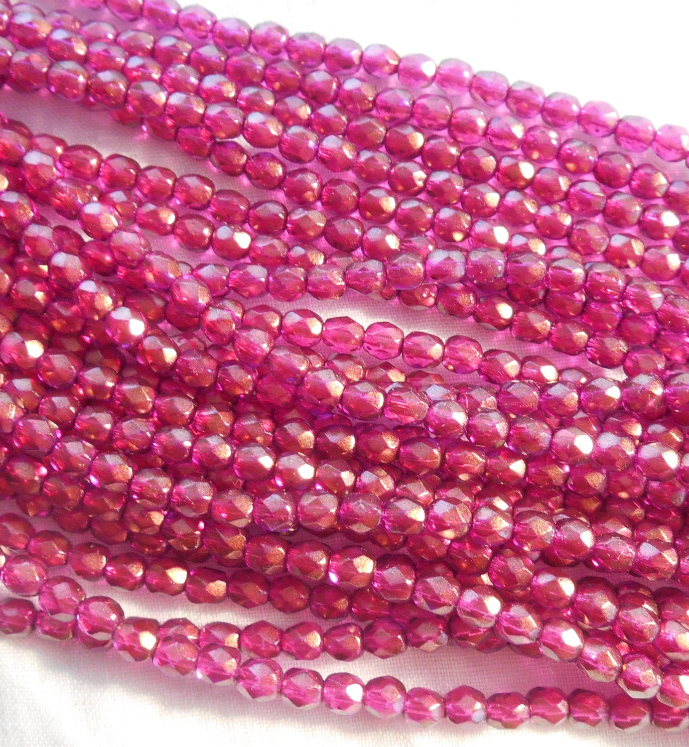 This is a set of 50 4mm Halo Madder Rose glass beads, deep pink fire polished faceted round glass beads with a transparent gold finish. These beads are a beautiful color and they will stand out in any project!