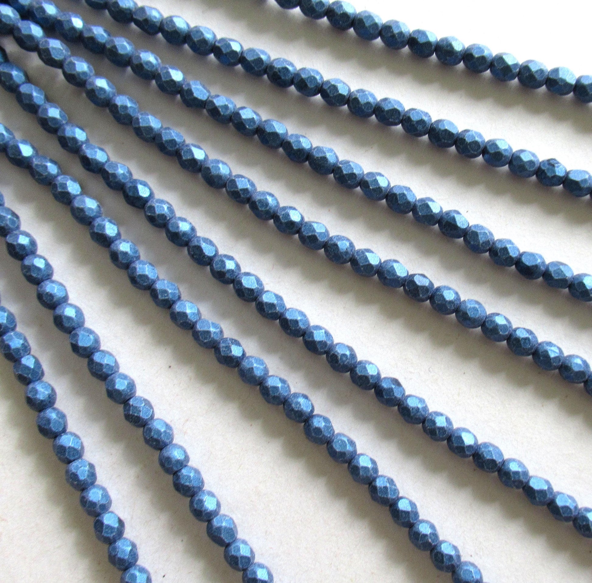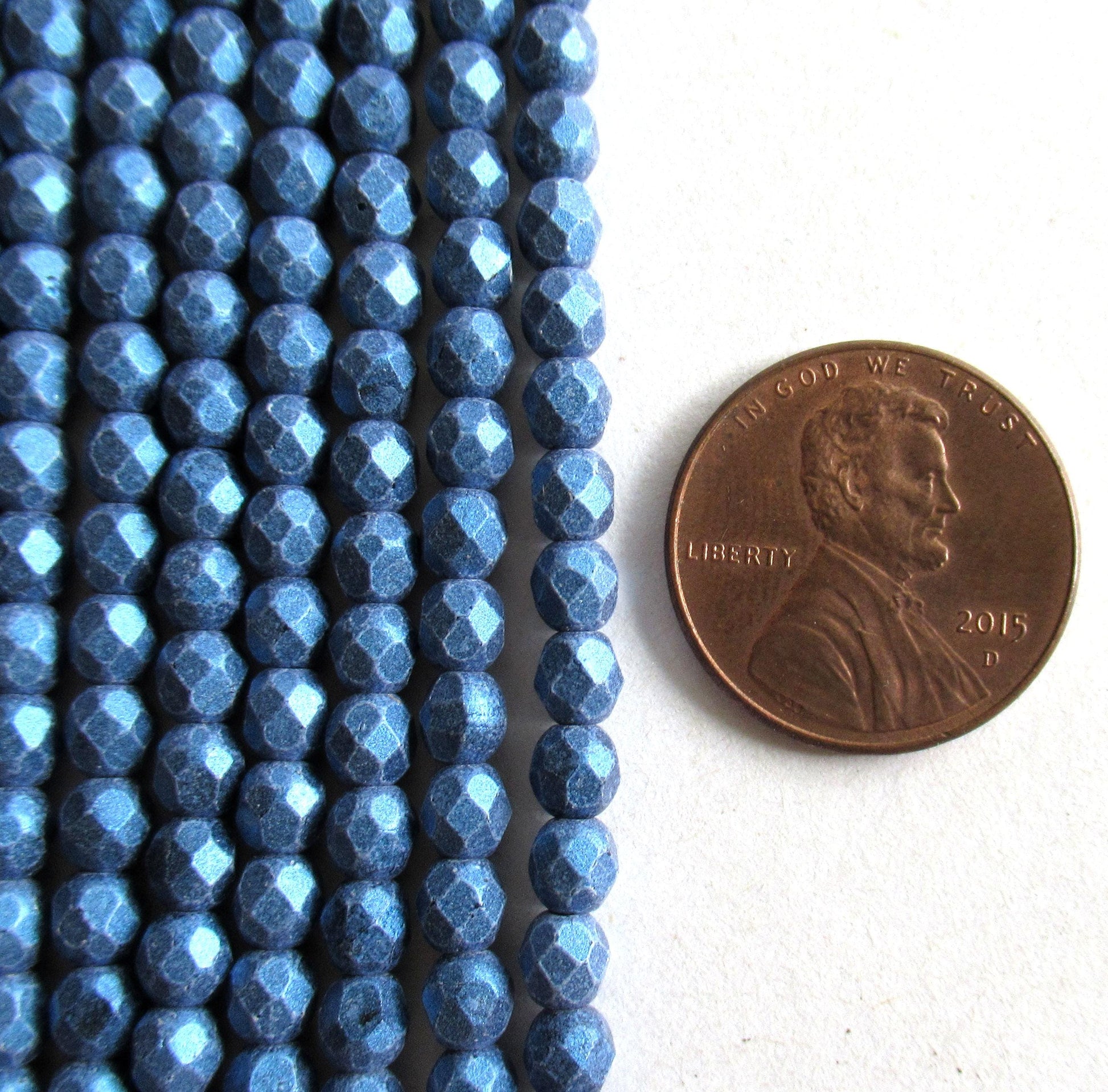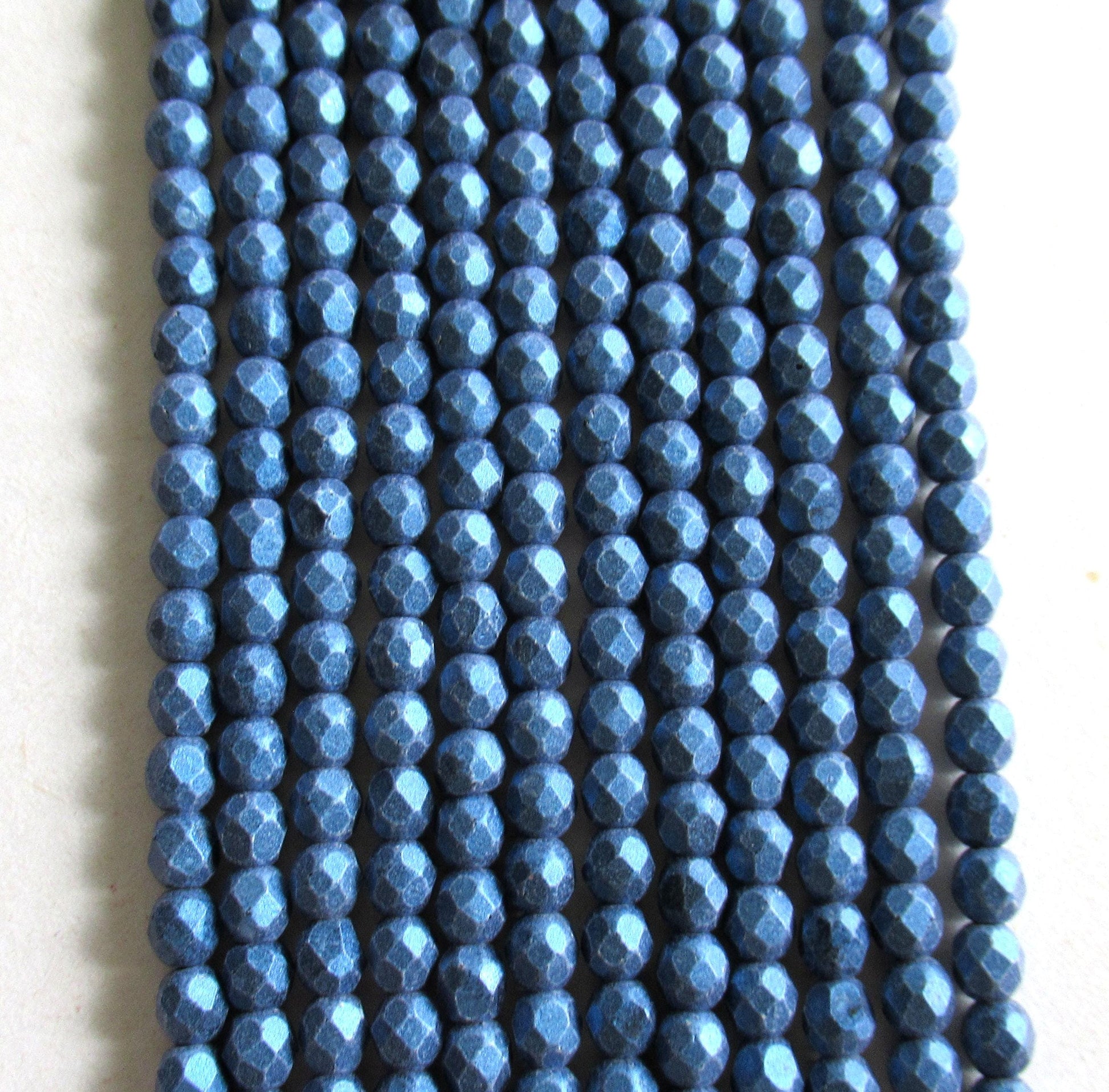 50 4mm matte metallic suede blue Czech glass beads - faceted fire polished round beads - C0025