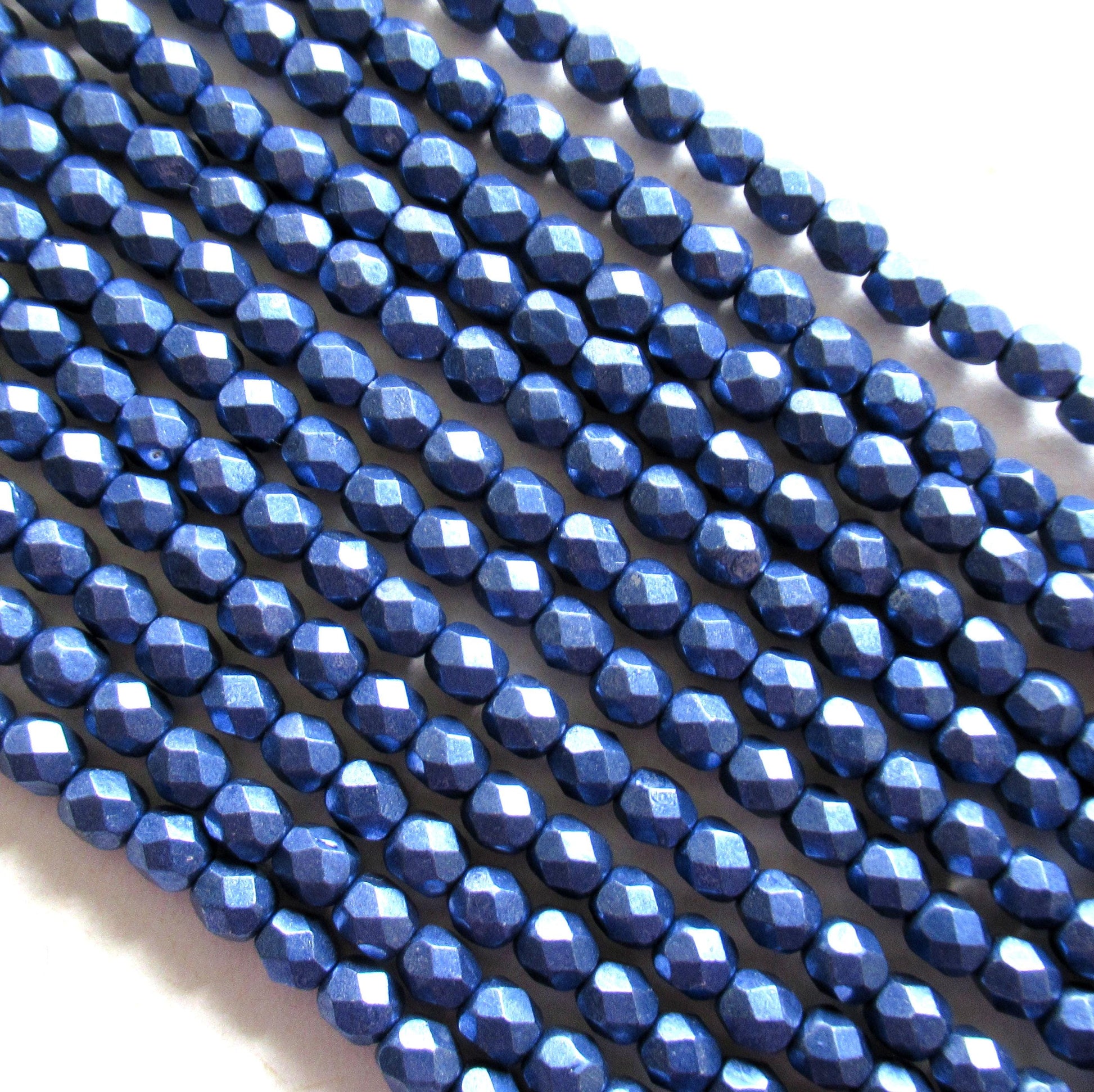 50 4mm saturated super violet Czech glass beads - metallic blue violet purple beads - faceted fire polished beads - C0084