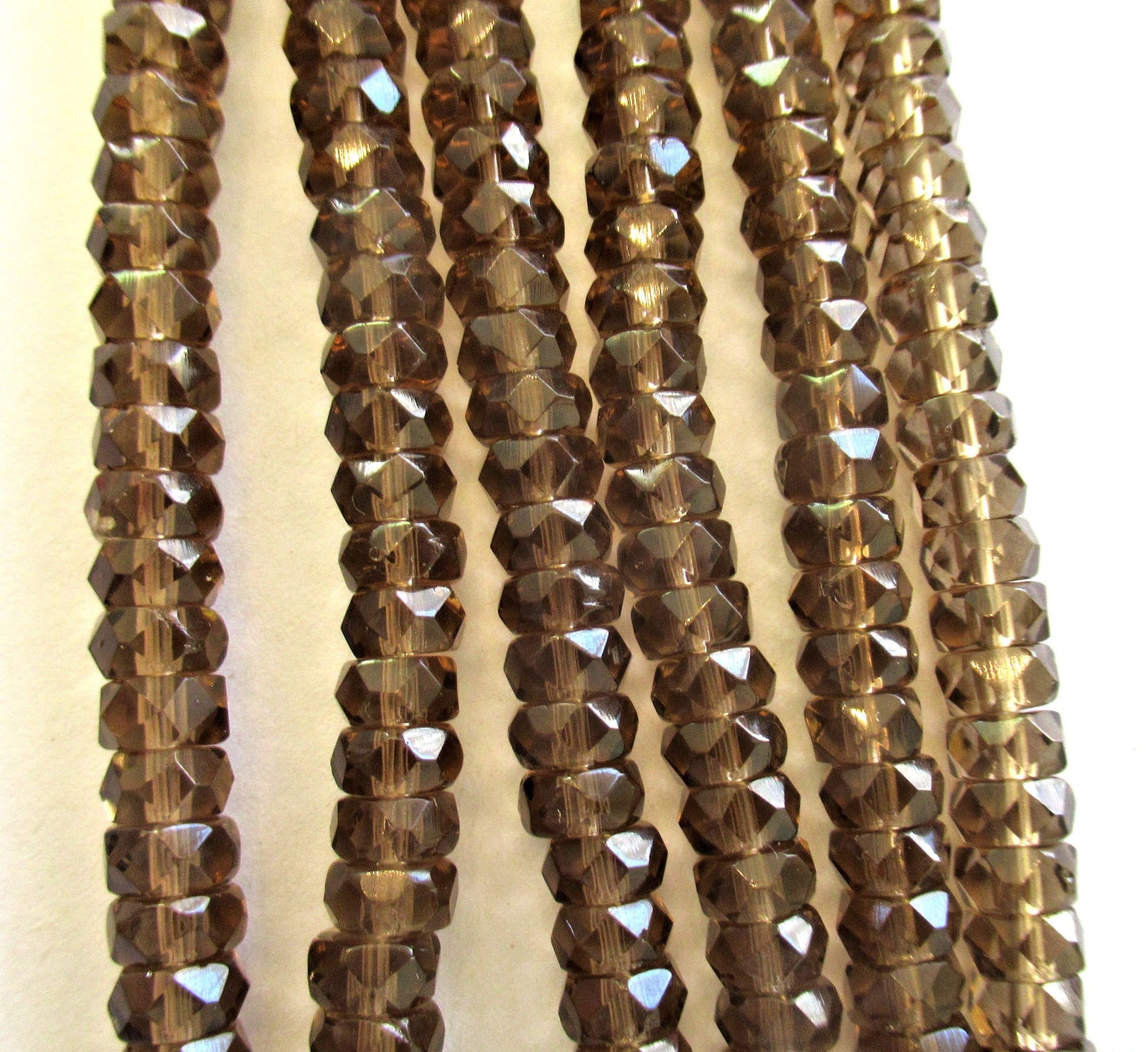50 6 x 3mm Czech glass faceted rondelle or spacer beads - smokey topaz brown faceted rondelles - C0037
