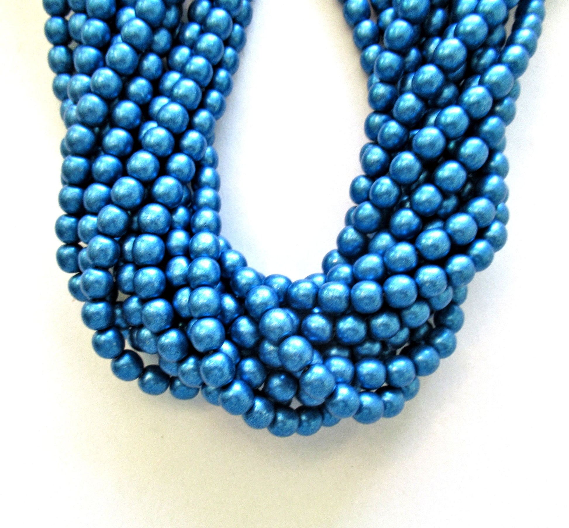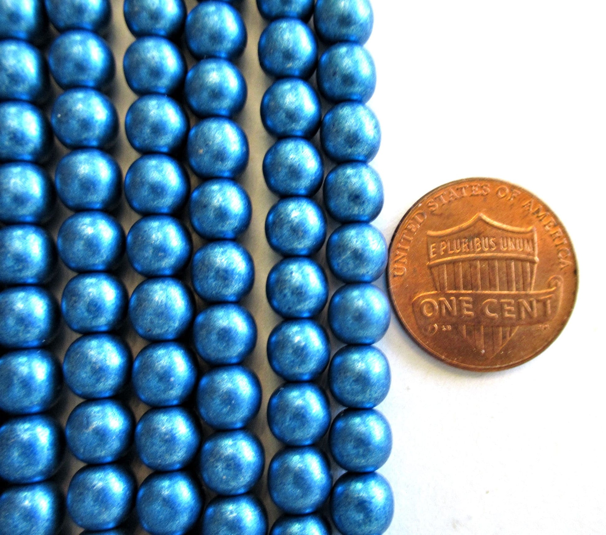 50 6mm Czech glass druk beads - Matte Metallic Saturated Nebulas Blue - smooth round druks - C0037