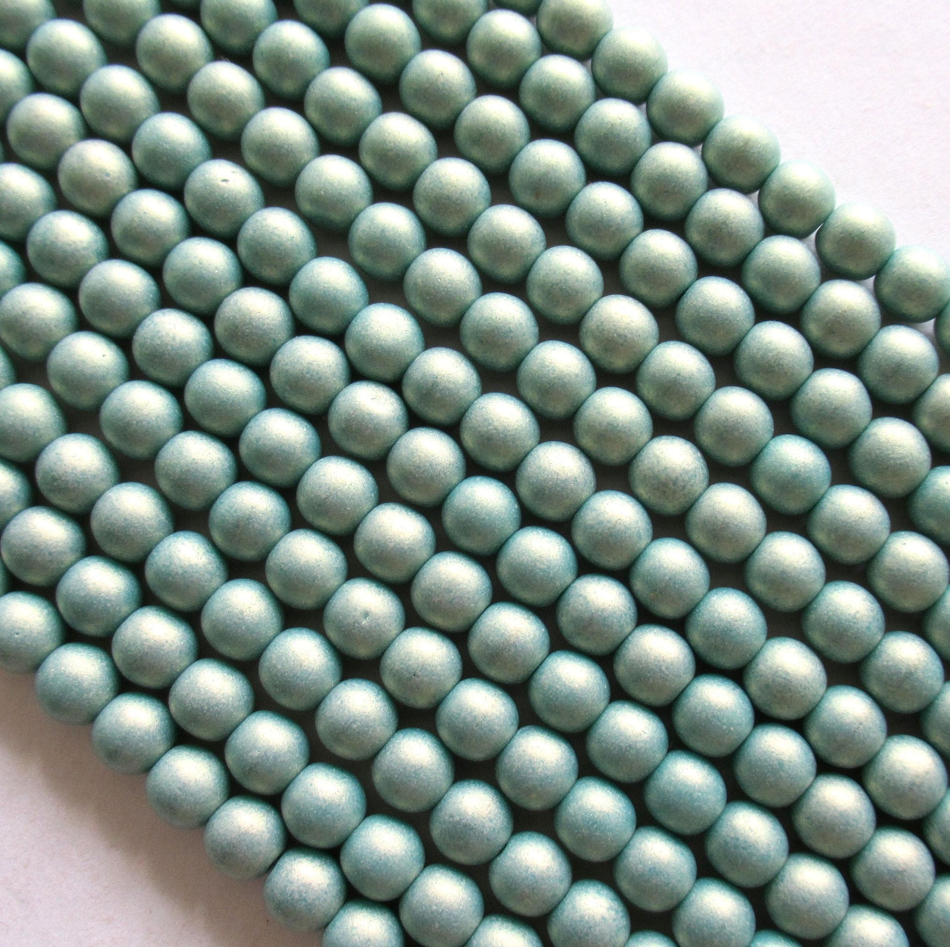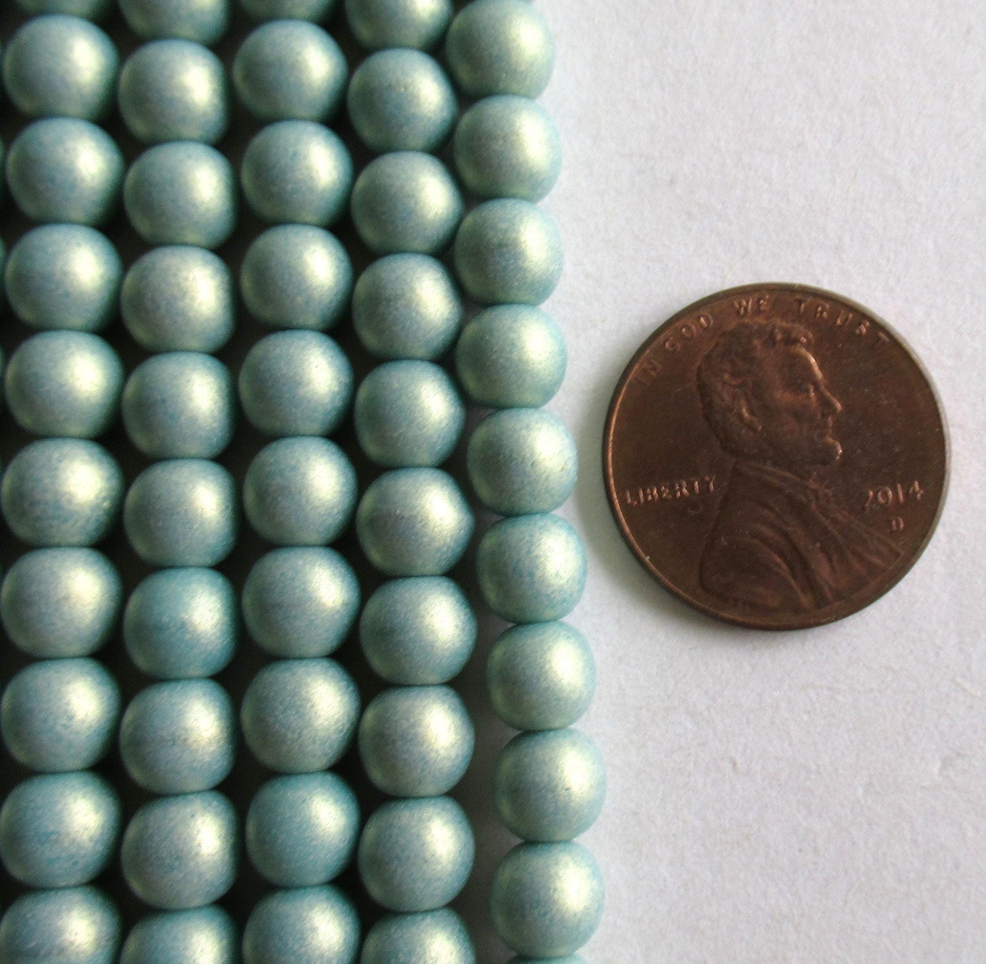 50 6mm Czech glass druk beads - matte sueded gold turquoise blue green - smooth round druks - C0007