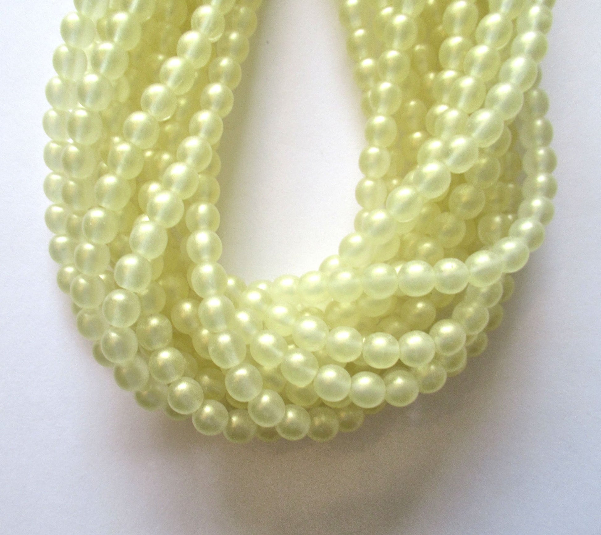 50 6mm Czech glass druk beads - Sueded Gold jonquil lemon yellow smooth round druks - C0056