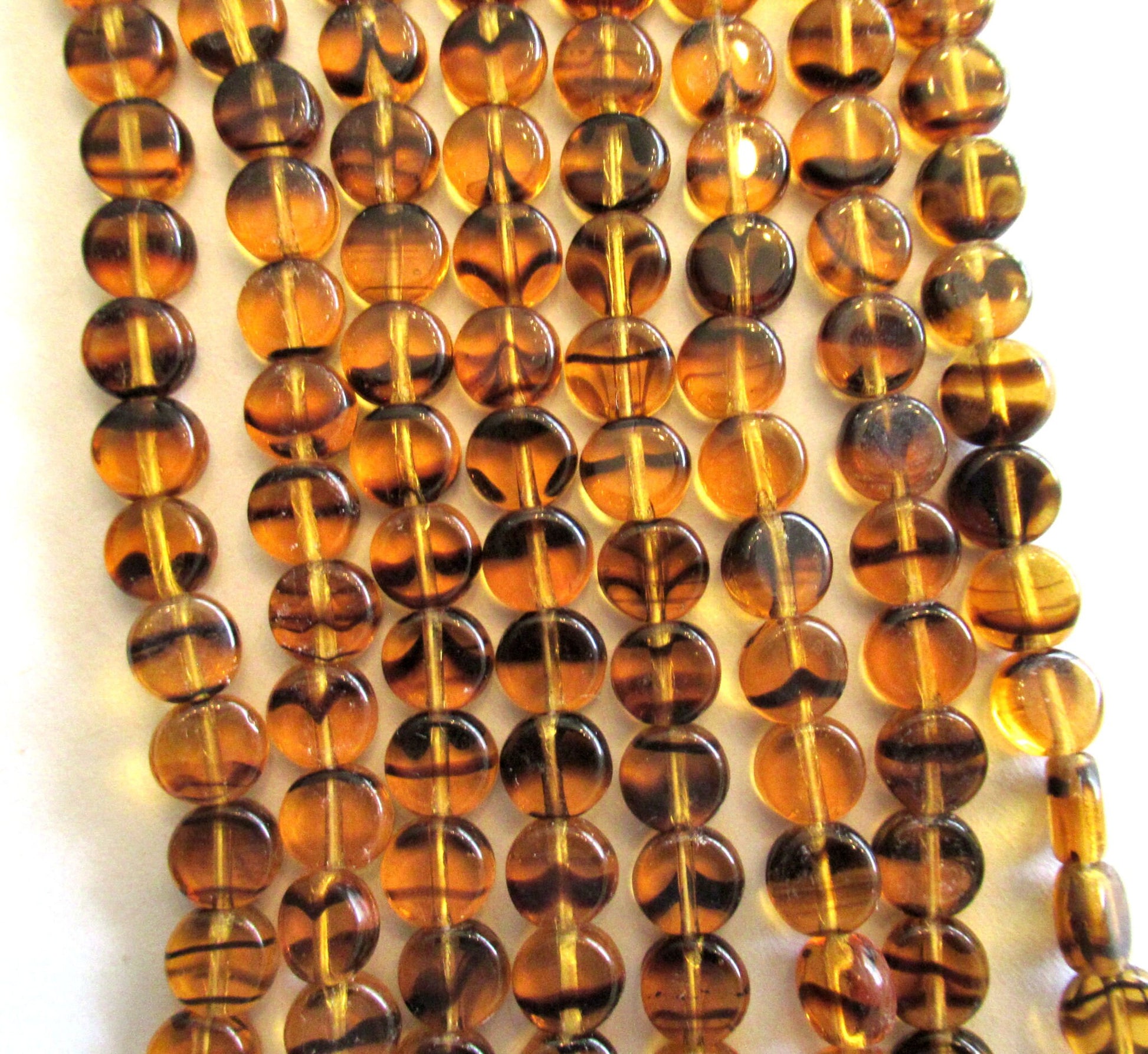 50 6mm Czech glass flat round tortoiseshell beads - little coin or disc beads C0094