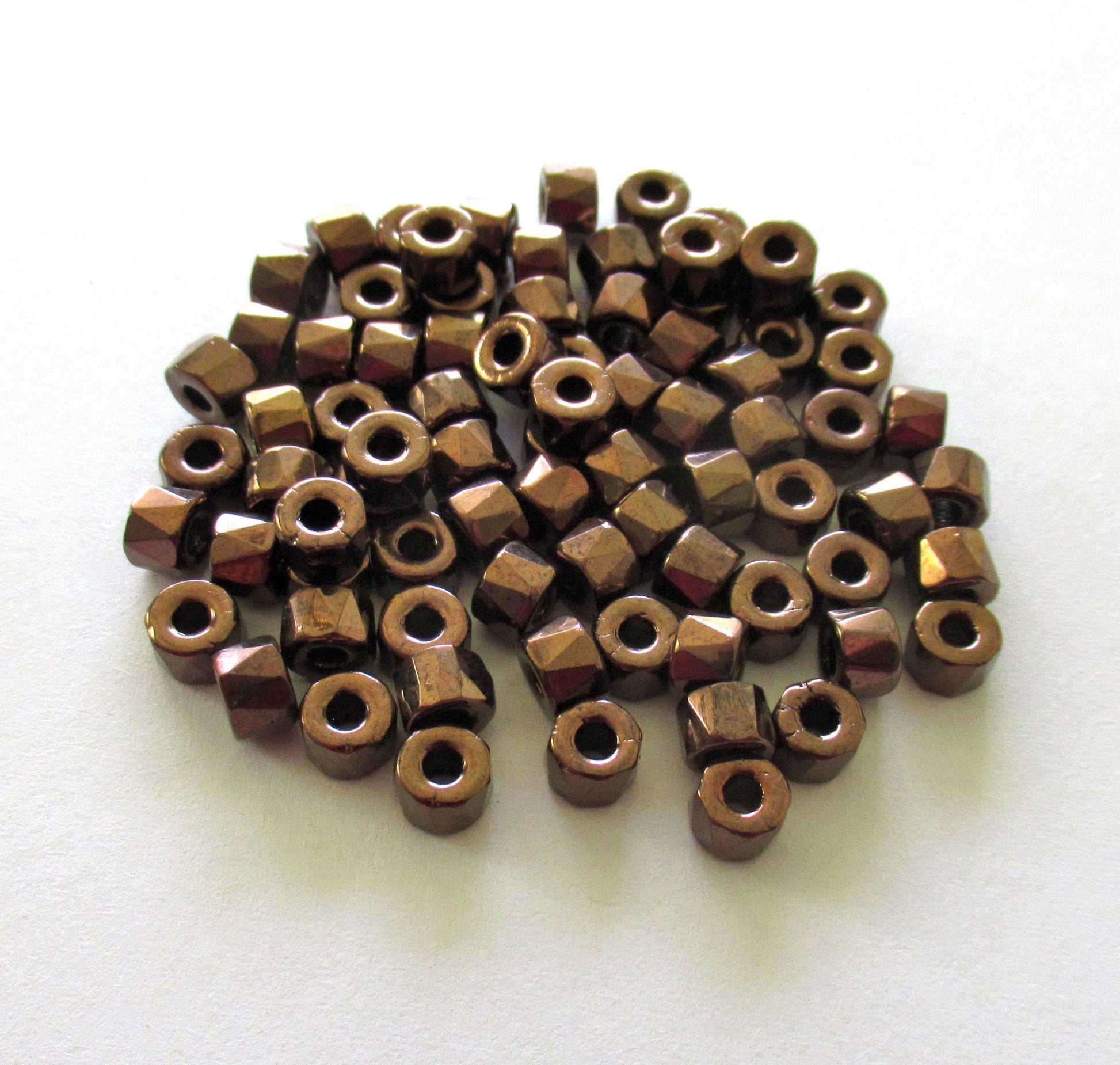 50 6mm Czech glass pony beads - bronze crow, roller beads - large hole brown faceted fire polished beads, C00422