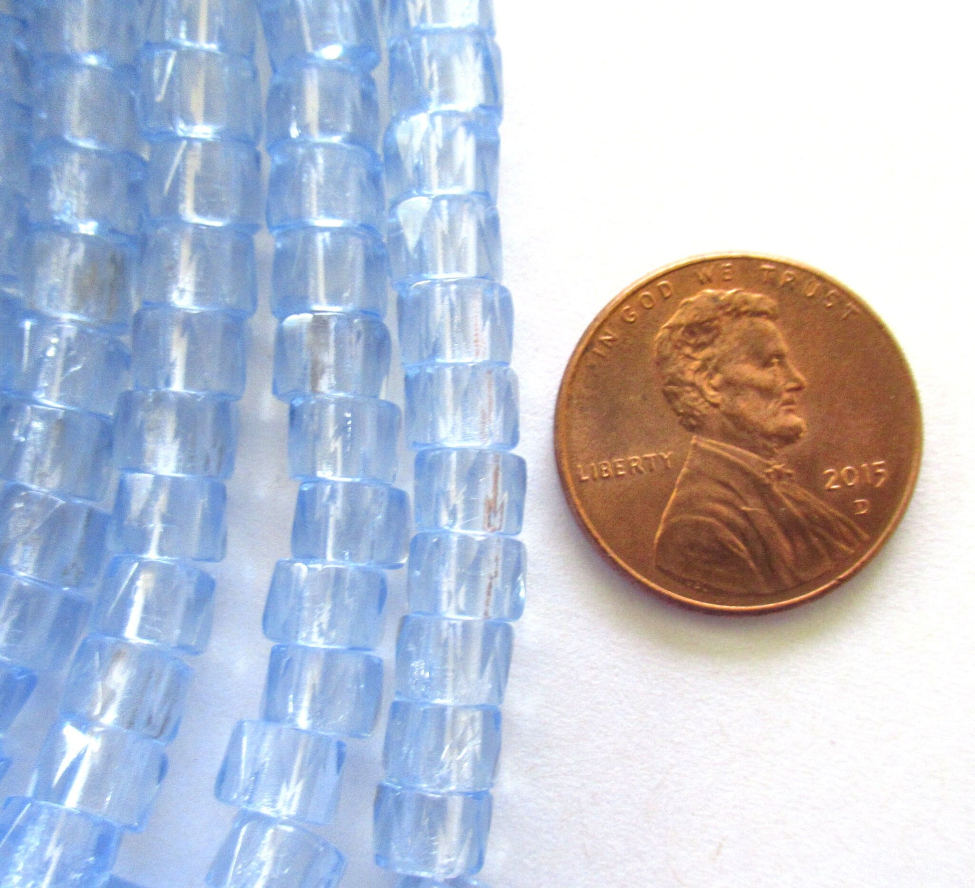 50 6mm Czech transparent light sapphire blue, faceted pony, roller beads, large hole fire polished crow beads, C00301