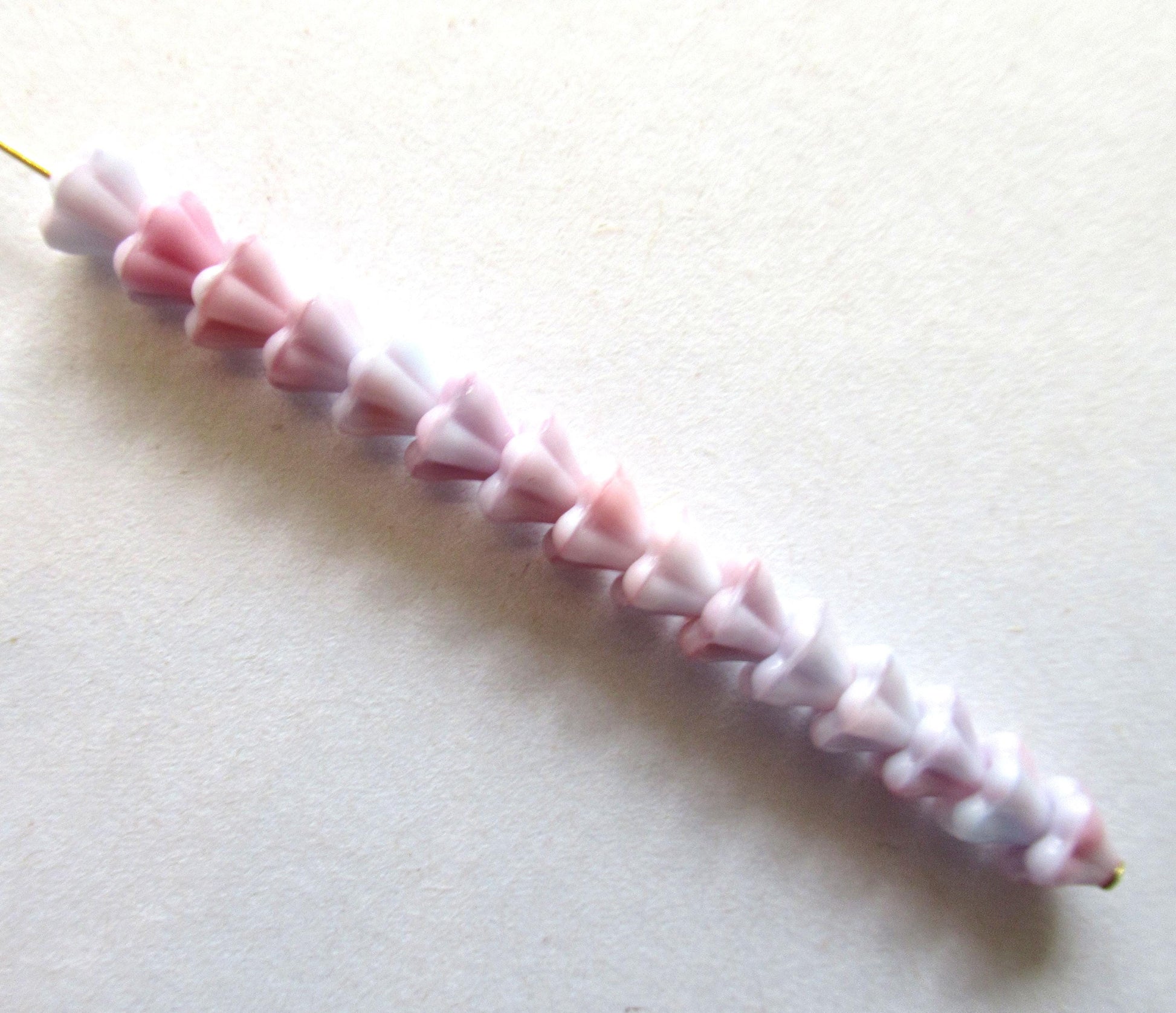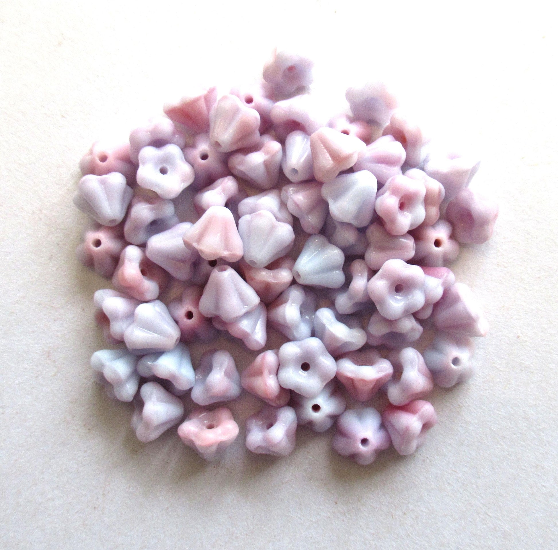 50 Czech glass baby bell flower beads - 6mm x 4mm - opaque marbled light pink and light blue pressed glass beads - C00971