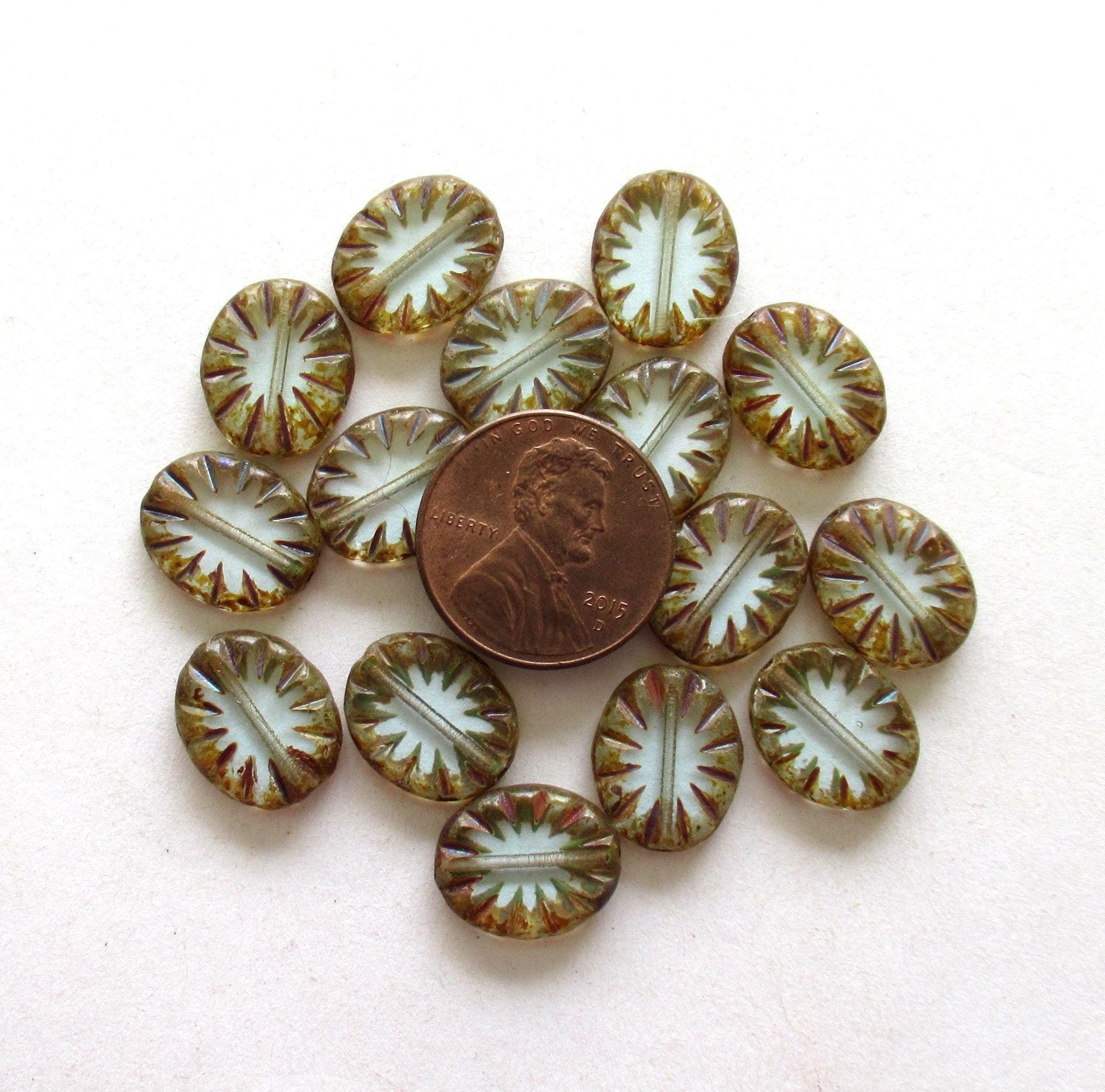 Czech glass blue oval beads - transparent very light blue picasso beads - 14mm x 11mm - table cut carved beads - 15 pieces - C00531