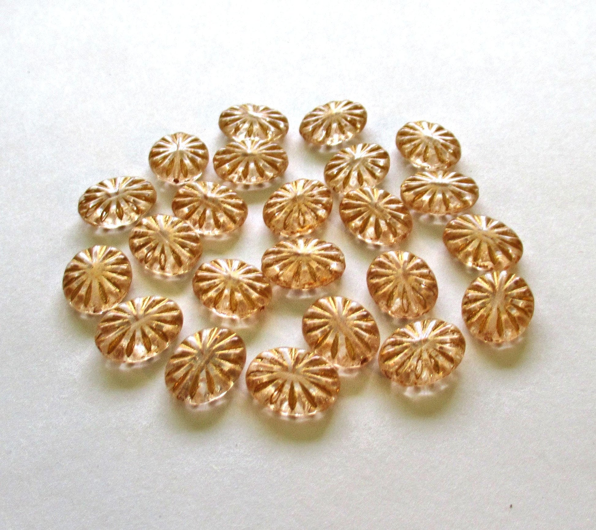 Czech glass oval beads - crystal clear beads with a gold wash - 14mm x 11mm - sun burst pressed glass beads - 8 beads - C0431