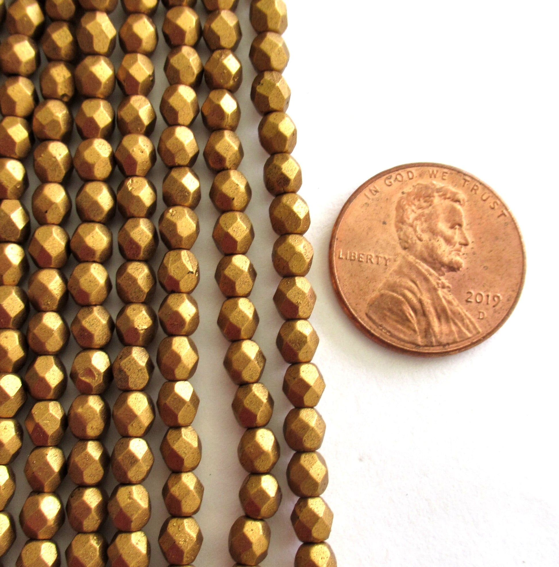 Fifty 4mm Czech glass beads - matte metallic antique gold fire polished faceted round beads C0086