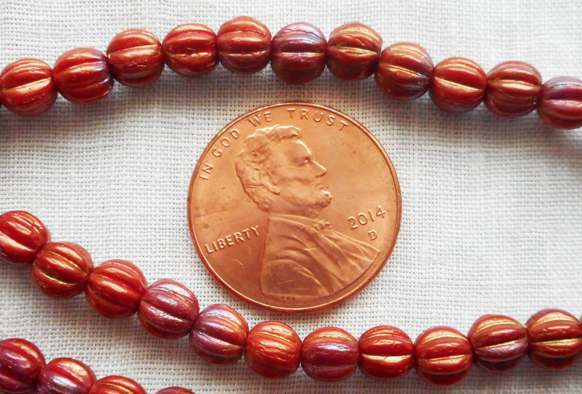 Fifty 5mm Bronze Luster Iris Opaque Red melon beads, Czech pressed glass beads C33150