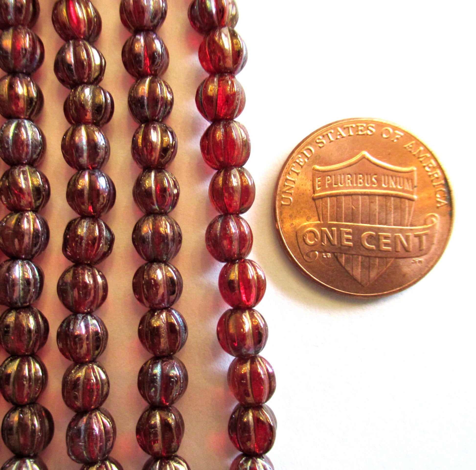 Fifty 5mm Czech glass melon beads - ruby garnet bronze iris transparent red melon beads - pressed glass beads C0026