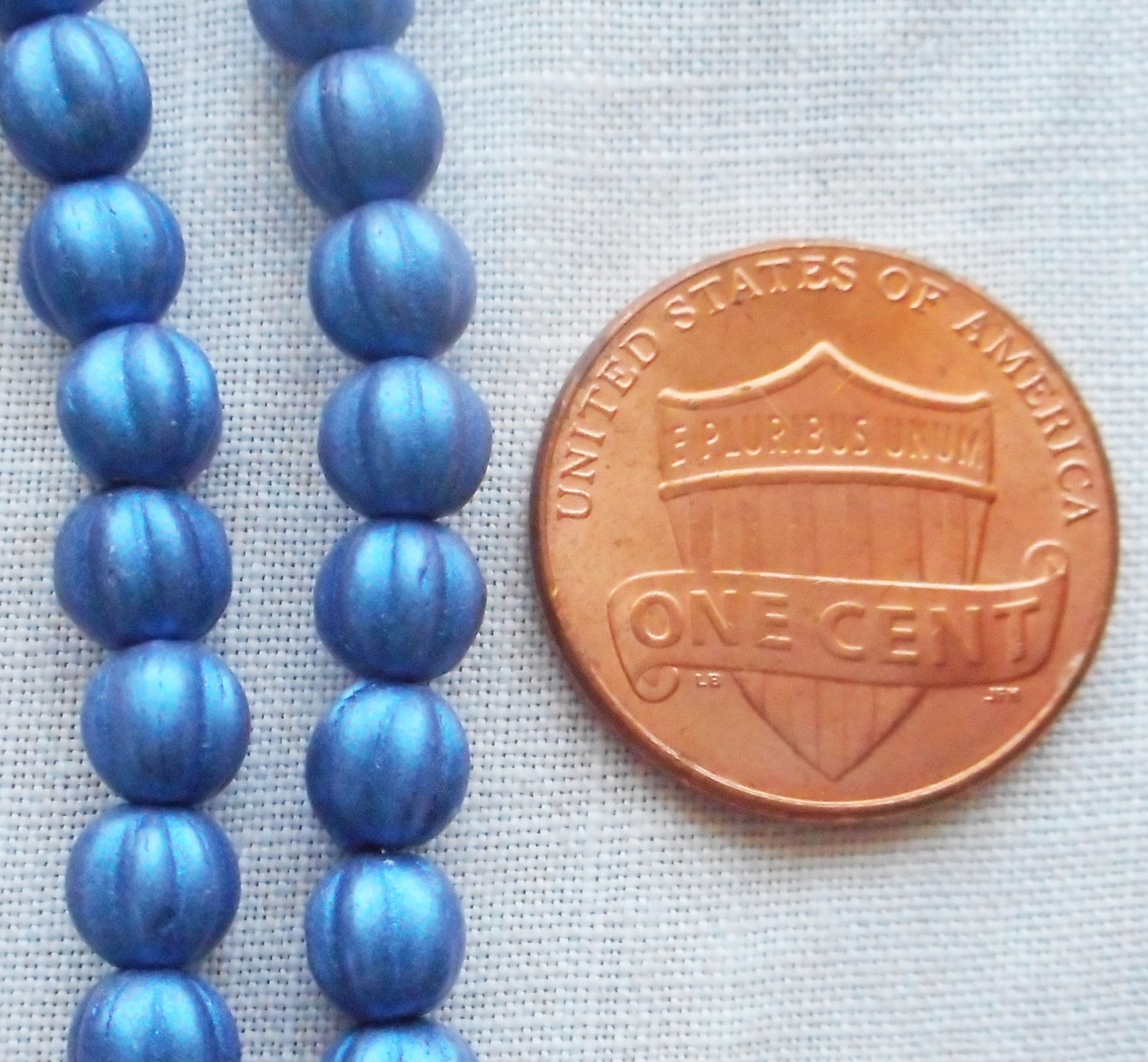 Fifty 5mm Matte Metallic Suede Blue melon beads, Czech pressed glass beads C0950