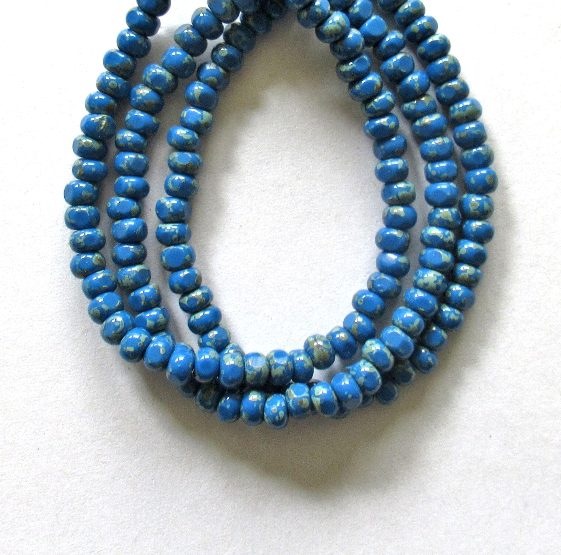 Fifty 6/0 tri cut faceted Czech glass seed beads - opaque light bright lapis blue picasso seed beads C0019