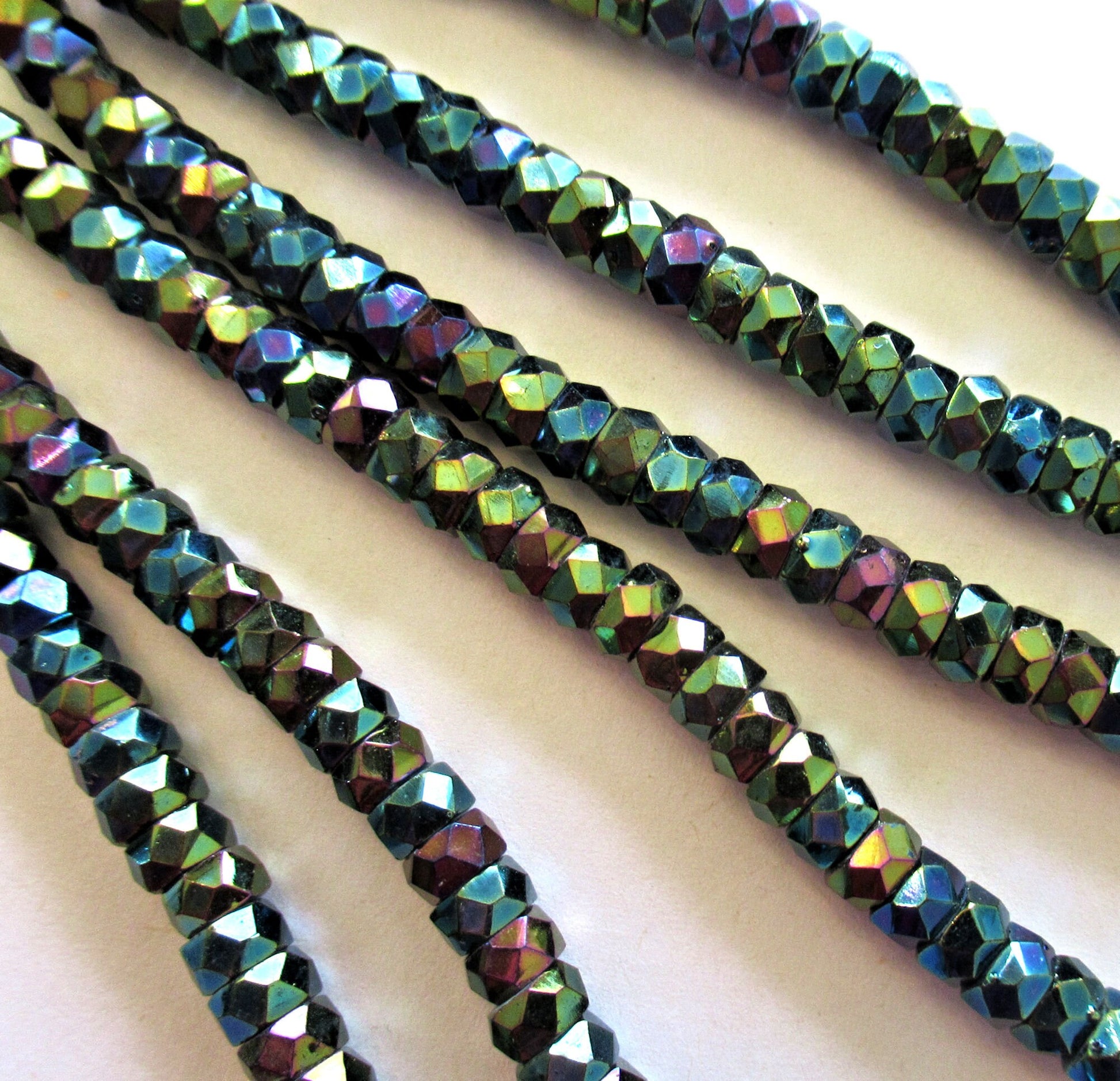 Fifty 6 x 3mm Czech glass faceted rondelle beads - green iris spacer beads - spacers or rondelles - C0048
