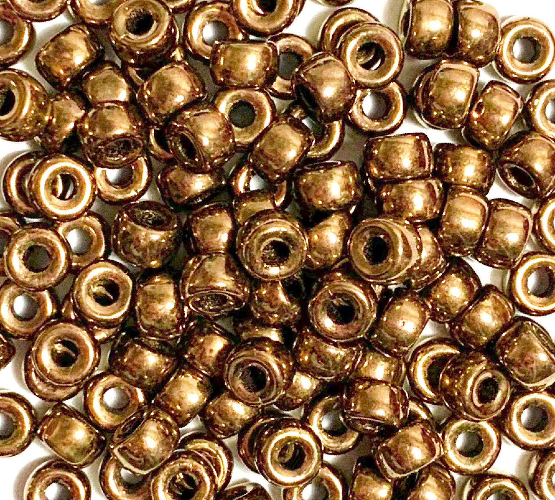 Fifty 6mm Czech light bronze pony roller beads, large hole glass crow beads - C0047