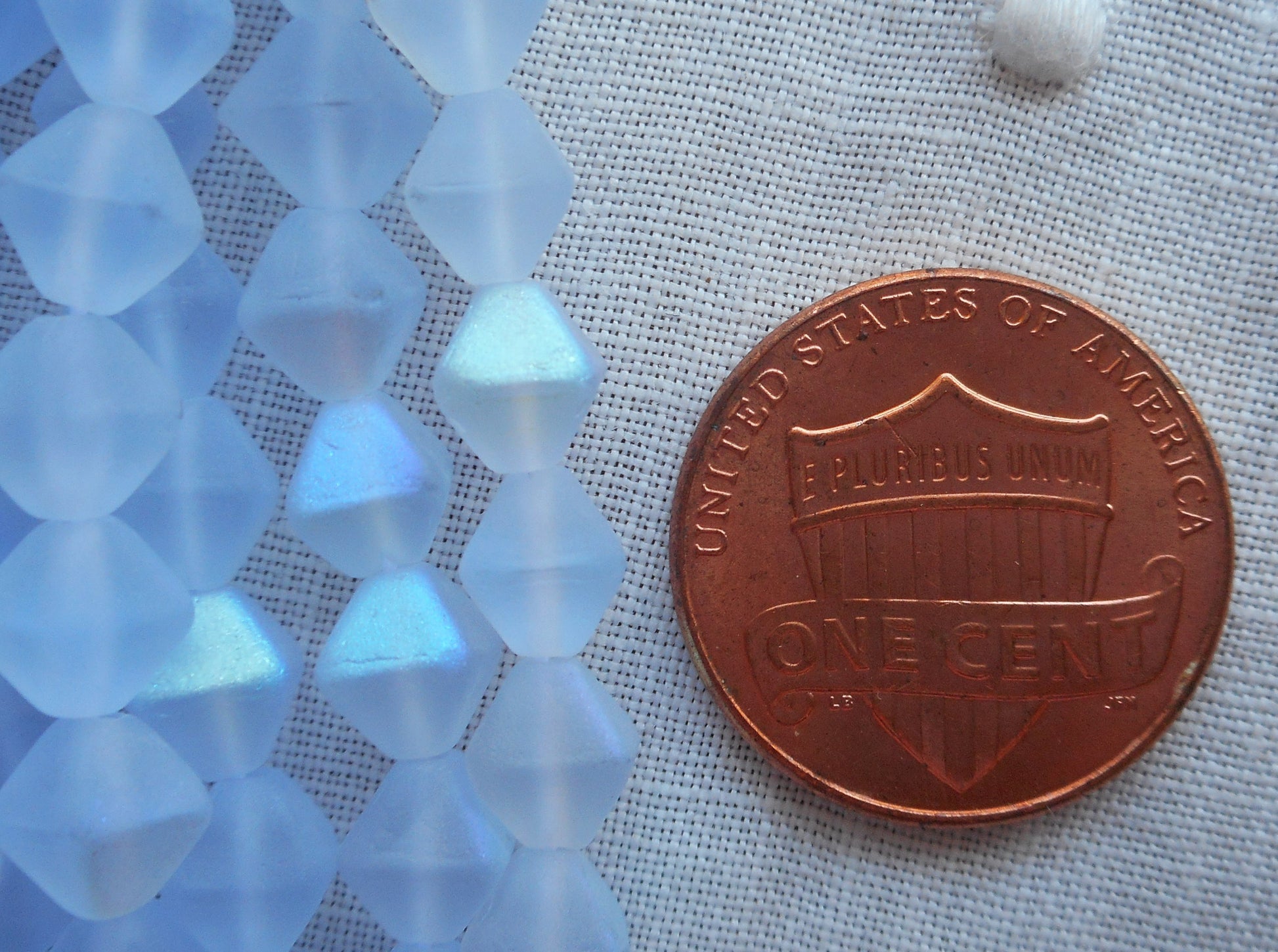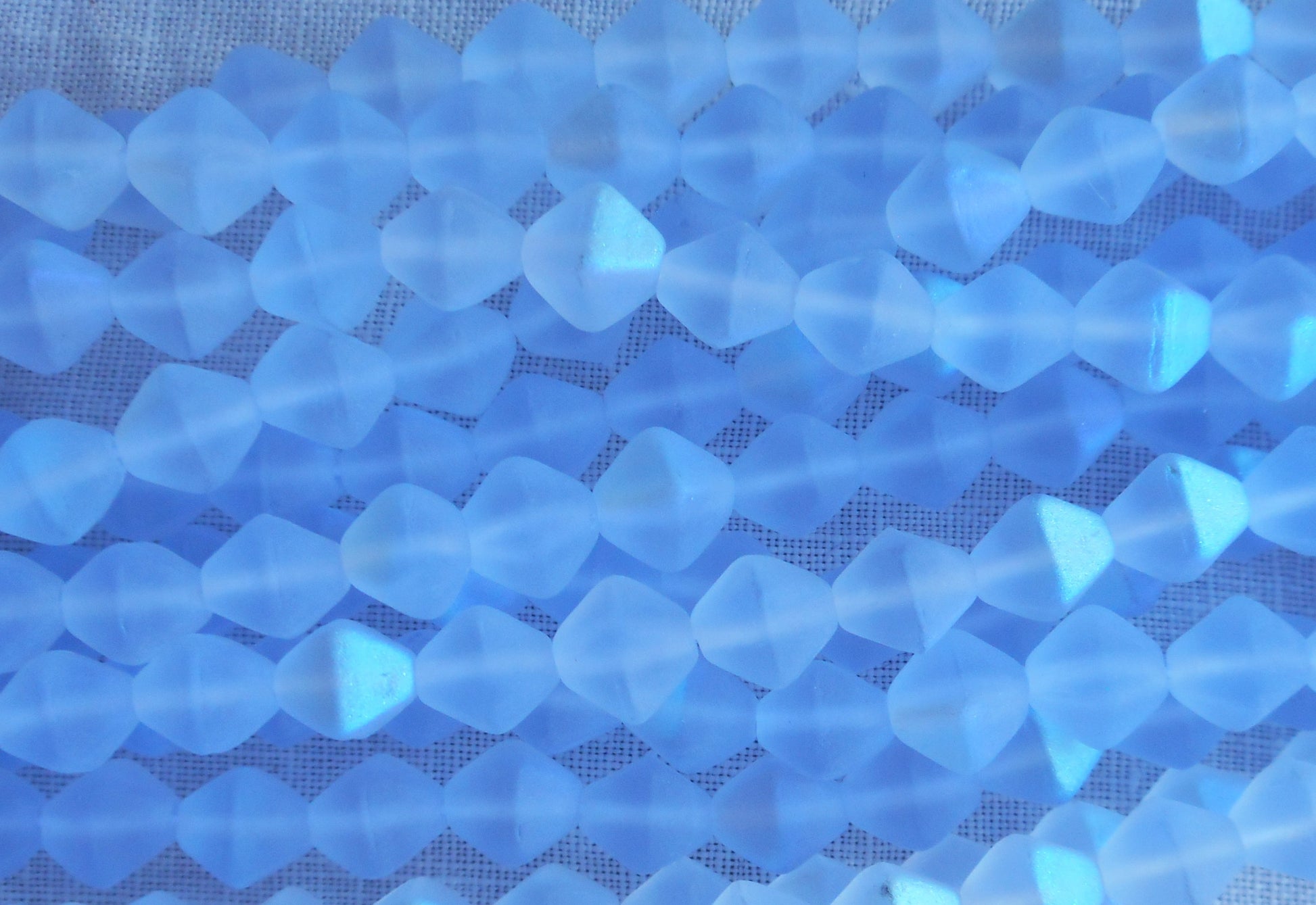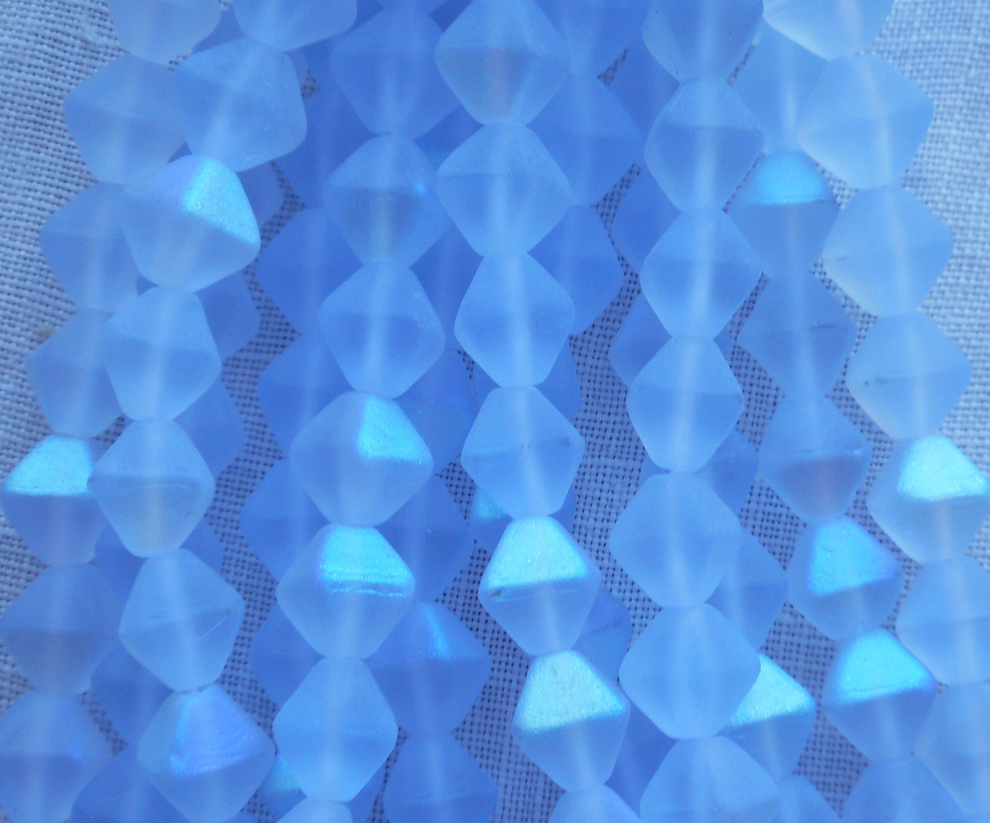 Fifty 6mm Matte Light Sapphire AB bicones, Iridescent blue pressed Czech glass bicone beads C8601