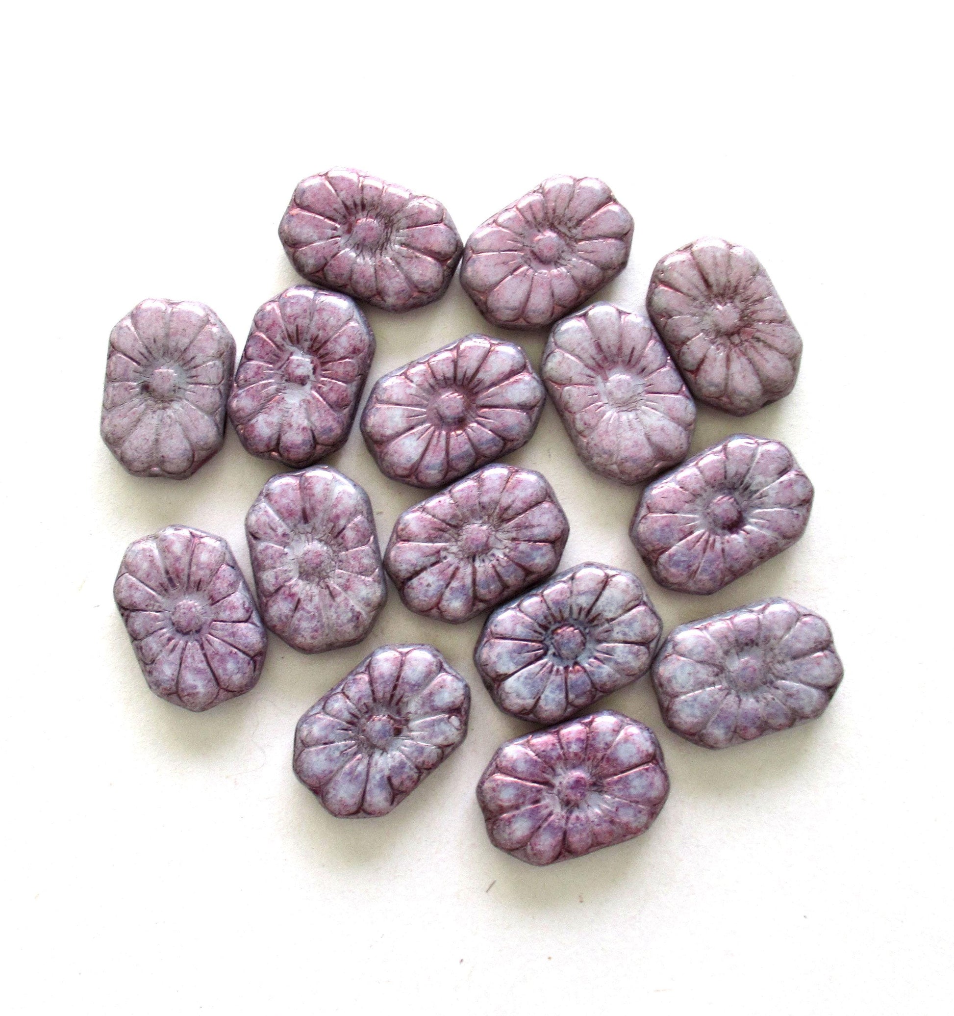 Five large Czech glass flower beads - splotchy purple rectangle beads - focal or statement beads - 19 x 14mm - C00011