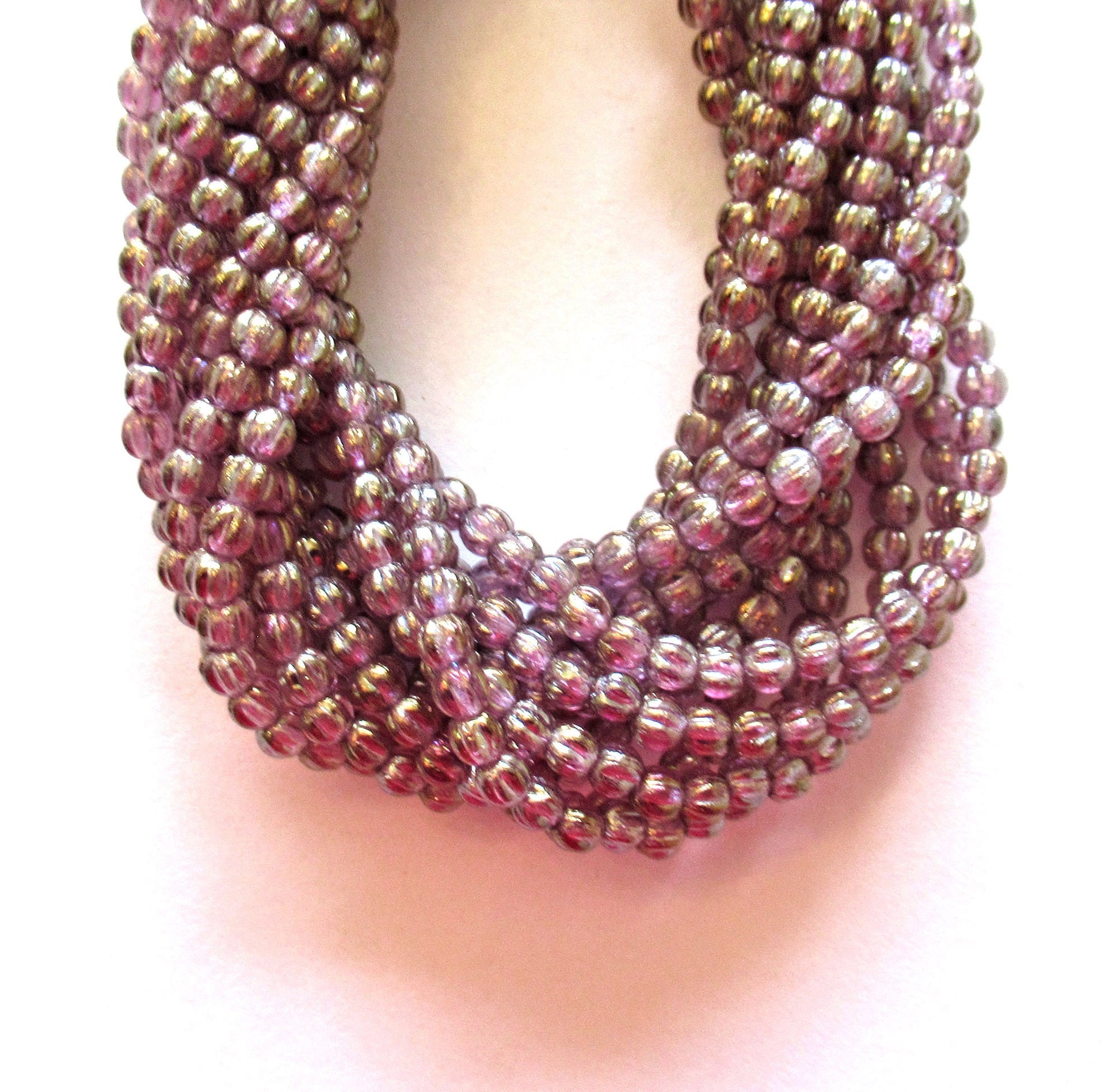 100 3mm Czech glass melon beads - transparent Luster Iris Amethyst melon beads - pressed glass purple beads - C0089