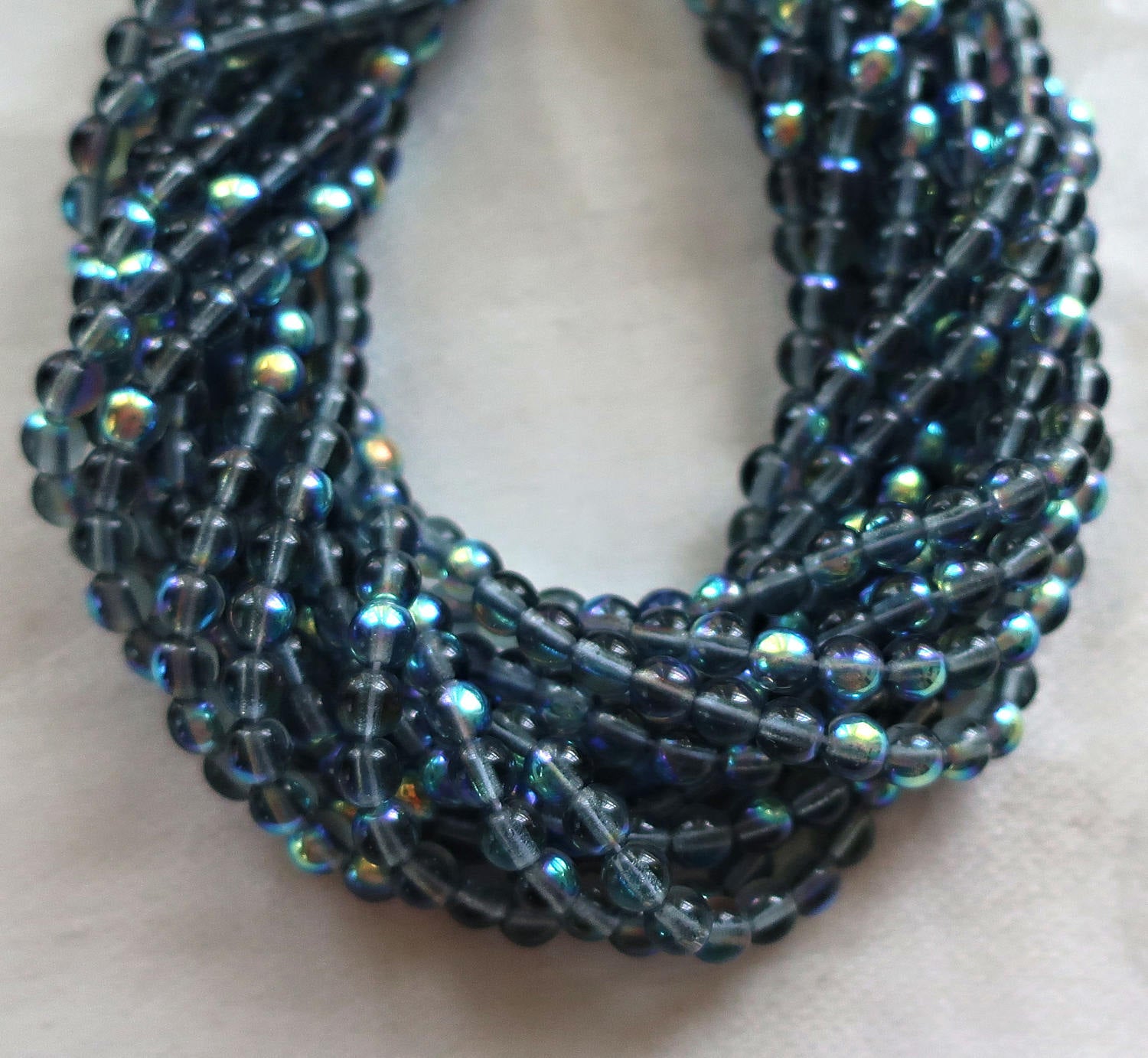 Lot of 100 4mm Montana Blue AB Czech glass druks, smooth round pressed glass druk beads C0036