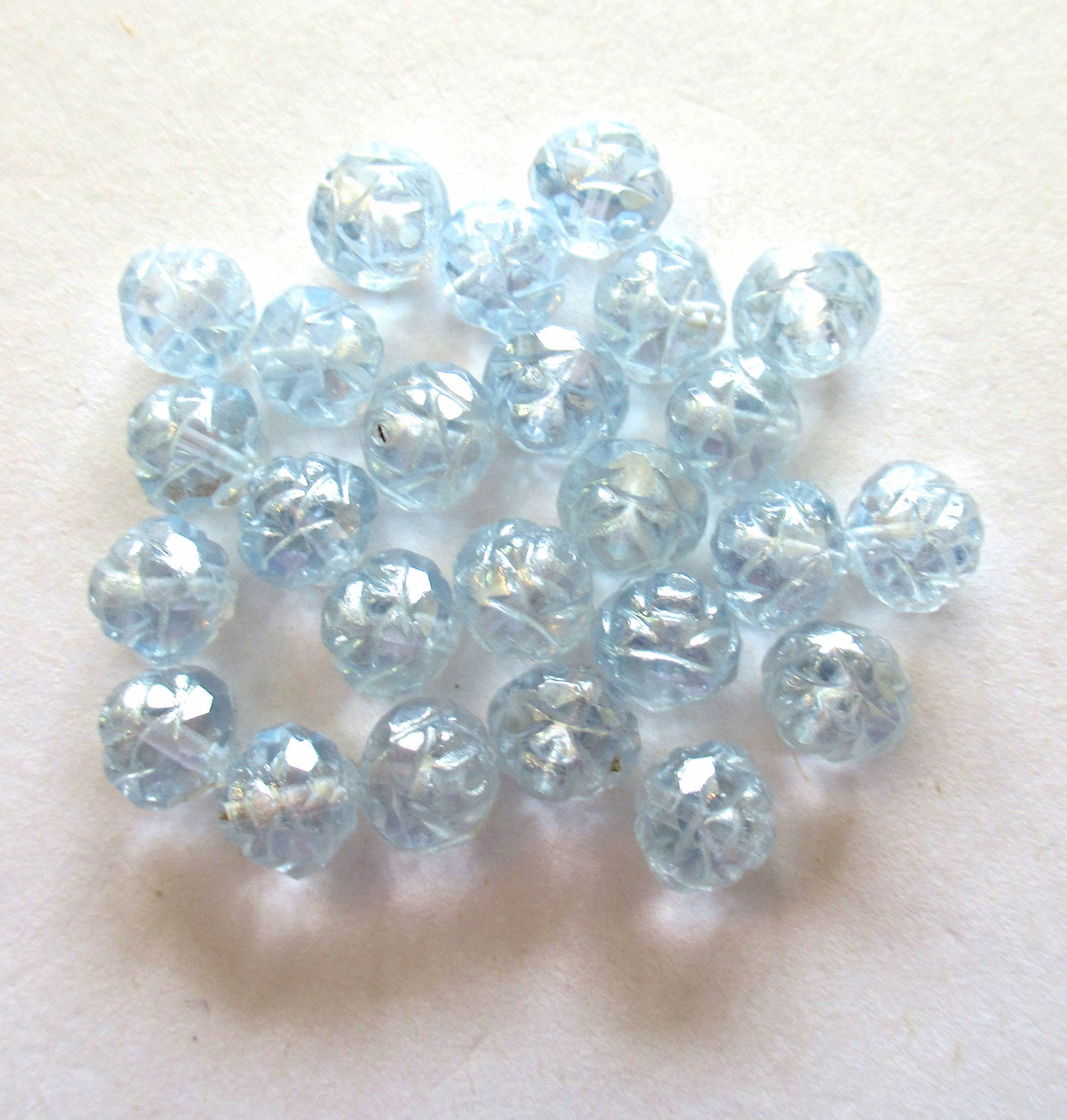 Lot of 12 Czech glass rosebud beads - Luster Light Sapphire 8 x 7mm - faceted fire polished antique cut beads C0084