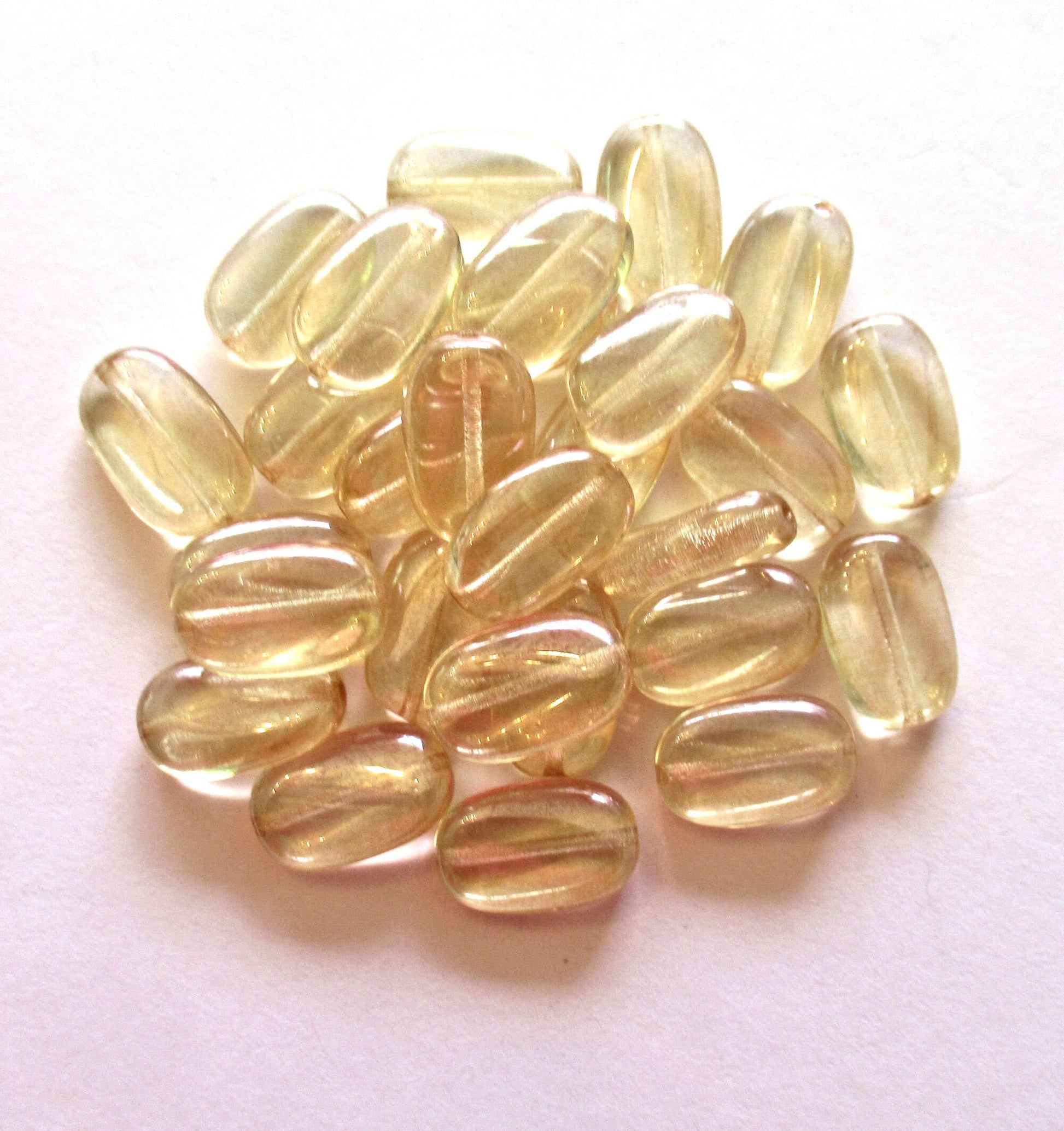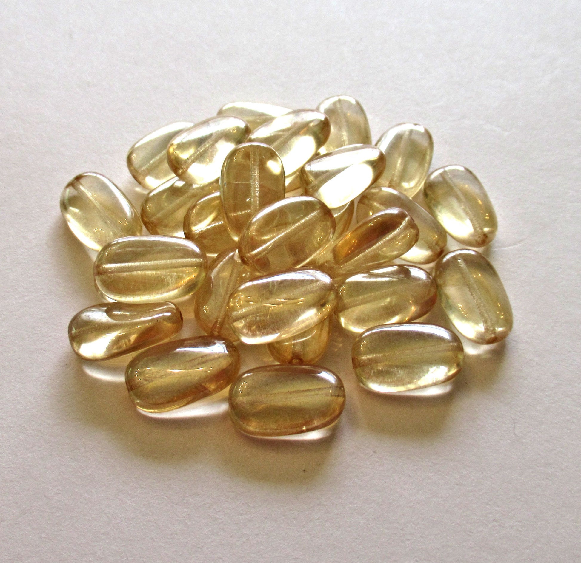 Lot of 15 slightly twisted oval Czech glass beads - 14mm x 8mm champagne - pressed glass beads C0062