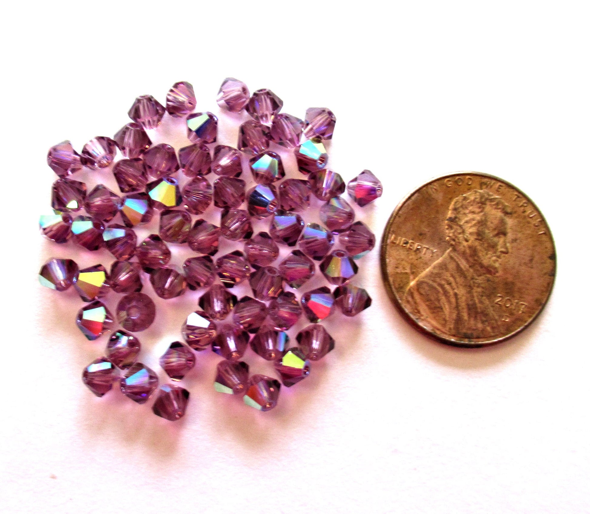 Lot of 24 4mm Amethyst AB Czech Preciosa Crystal bicone beads - faceted glass purple AB bicones C0036