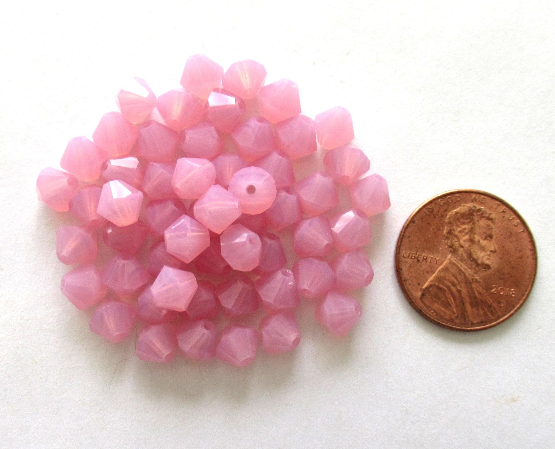 Lot of 24 6mm Czech glass Preciosa Crystal bicone beads - milky pink opal faceted glass bicones C0058