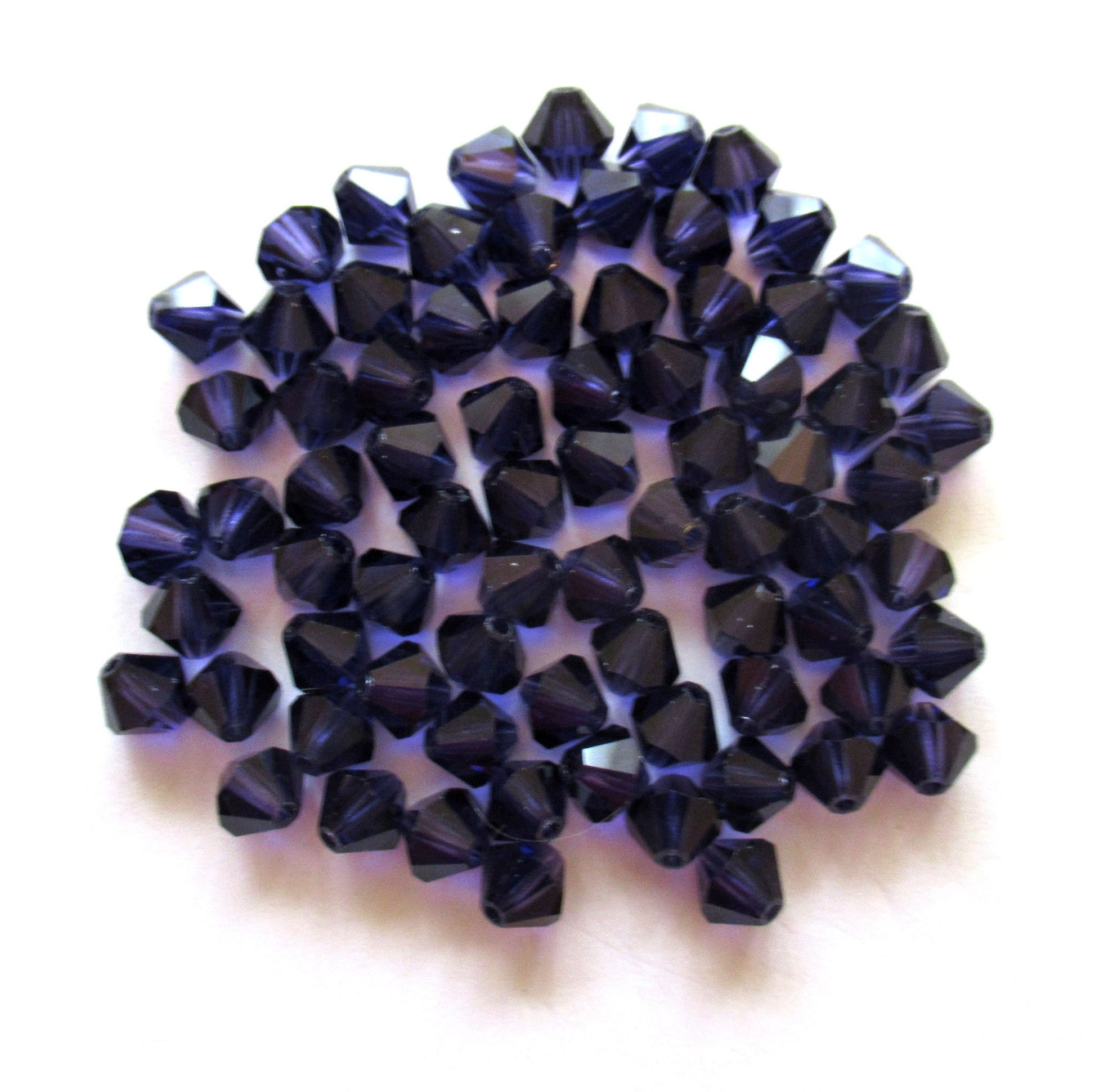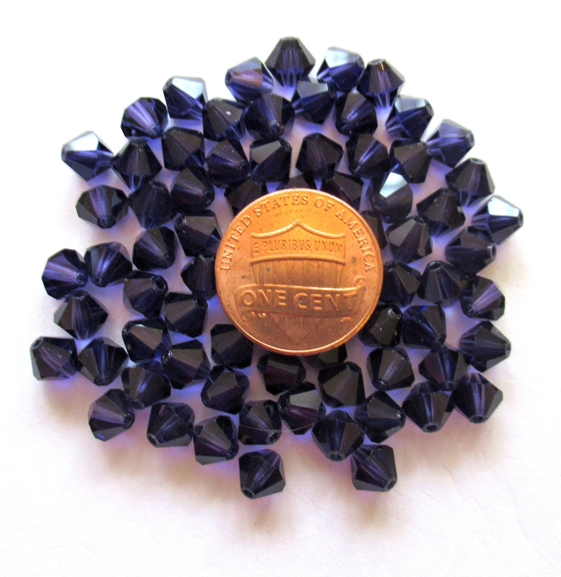 Lot of 24 6mm deep purple / tanzanite Czech Preciosa Crystal bicone beads - faceted glass bicones C0079