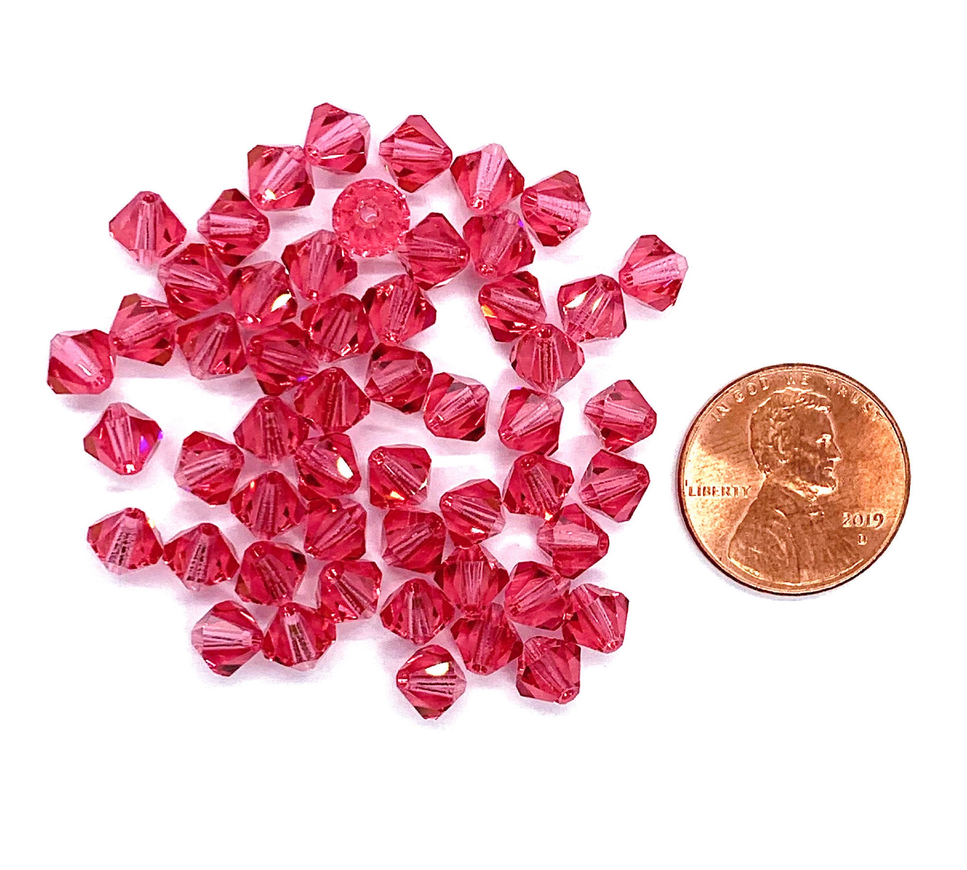 Lot of 24 6mm Indian pink Czech Preciosa Crystal bicone beads - faceted glass bicones C0079