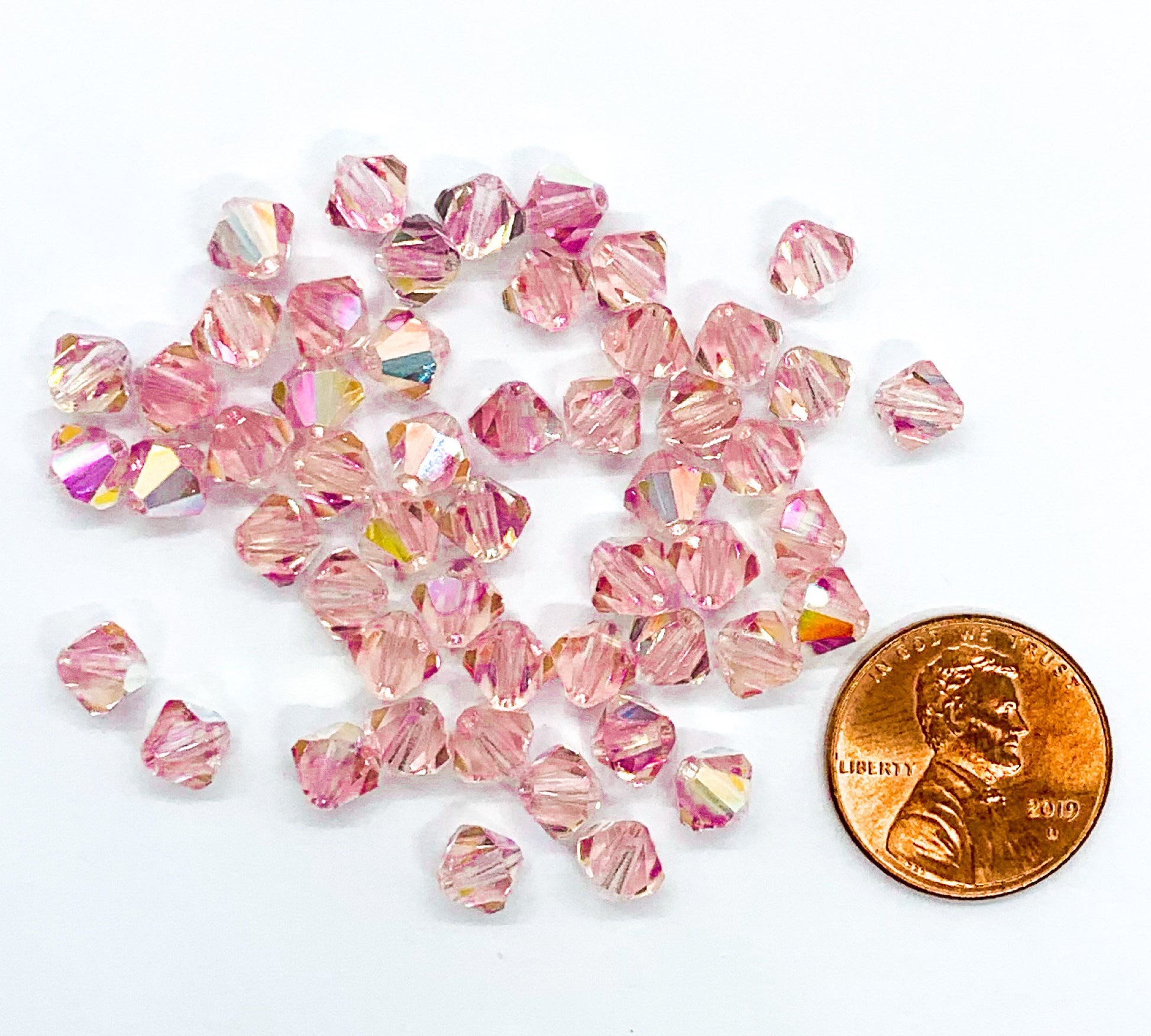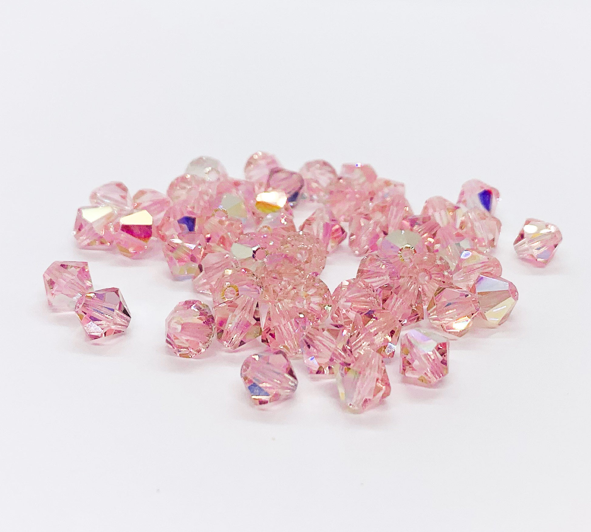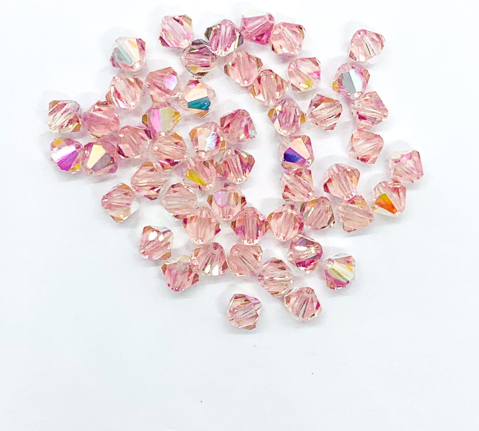 Lot of 24 6mm light rose pink AB Czech Preciosa Crystal bicone beads - faceted glass bicones C0641
