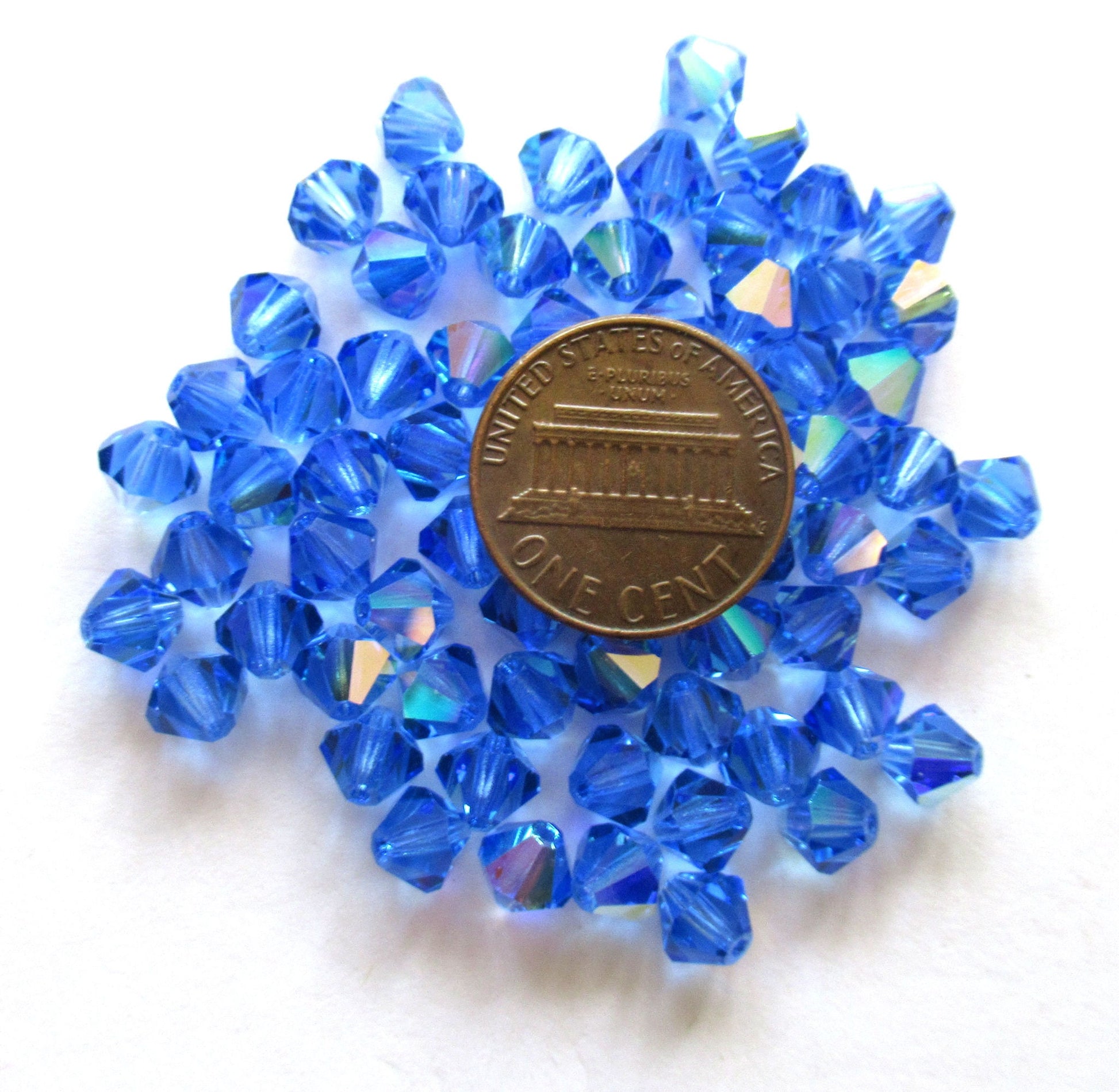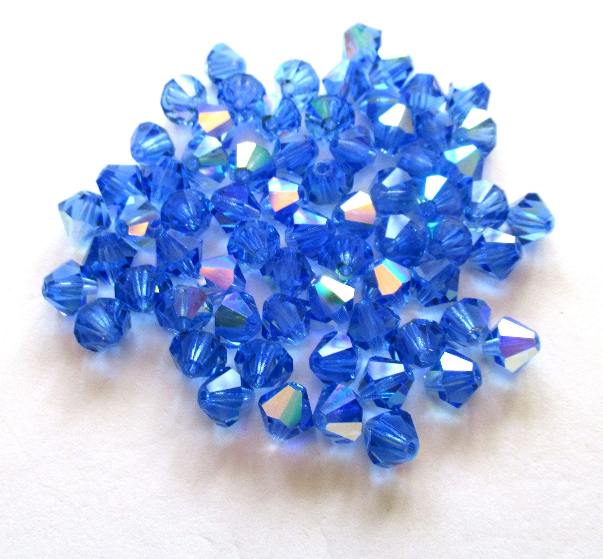 Lot of 24 6mm Sapphire Blue AB Czech Preciosa Crystal bicone beads - faceted glass blue AB bicones C00221
