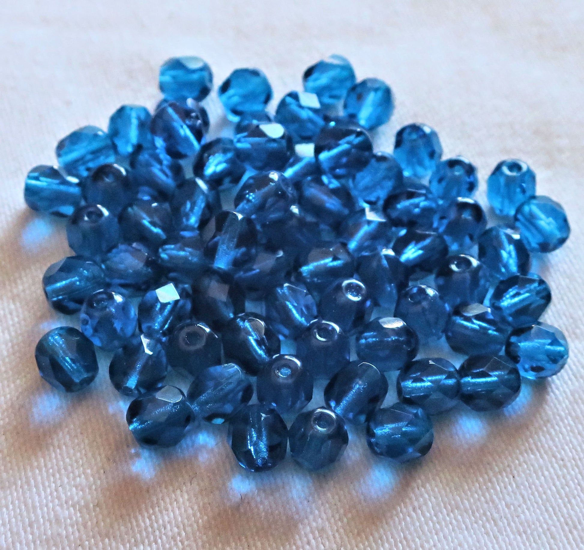Lot of 25 6mm capri blue Czech glass beads - fire polished faceted round beads - C2525